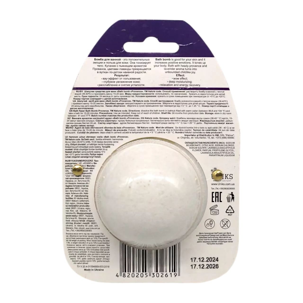 заспокоює, створюючи відчуття спокою і гармонії. Бомбочка збагачена