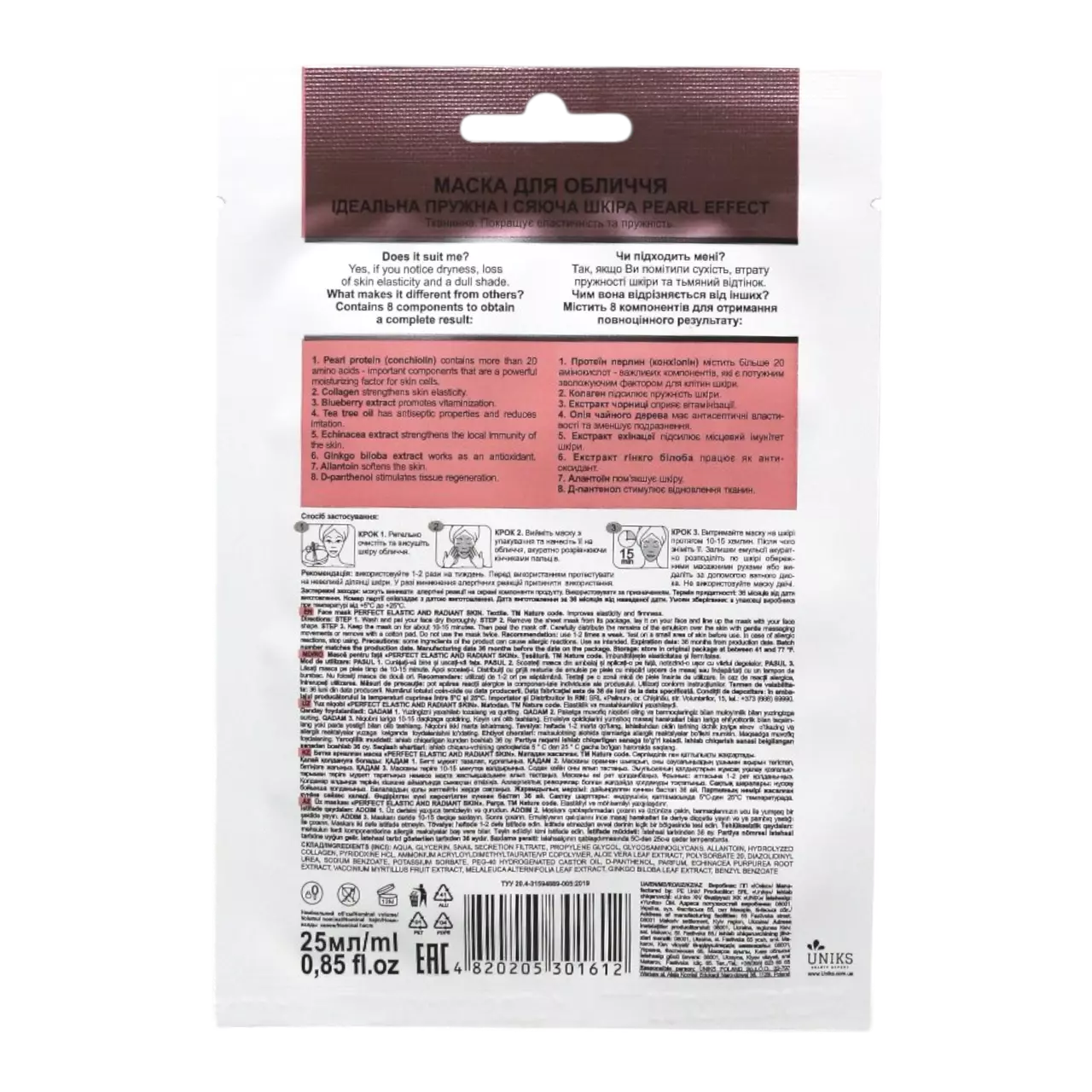 здоровий вигляд, зволожує та пом'якшує. Тканинна основа маски