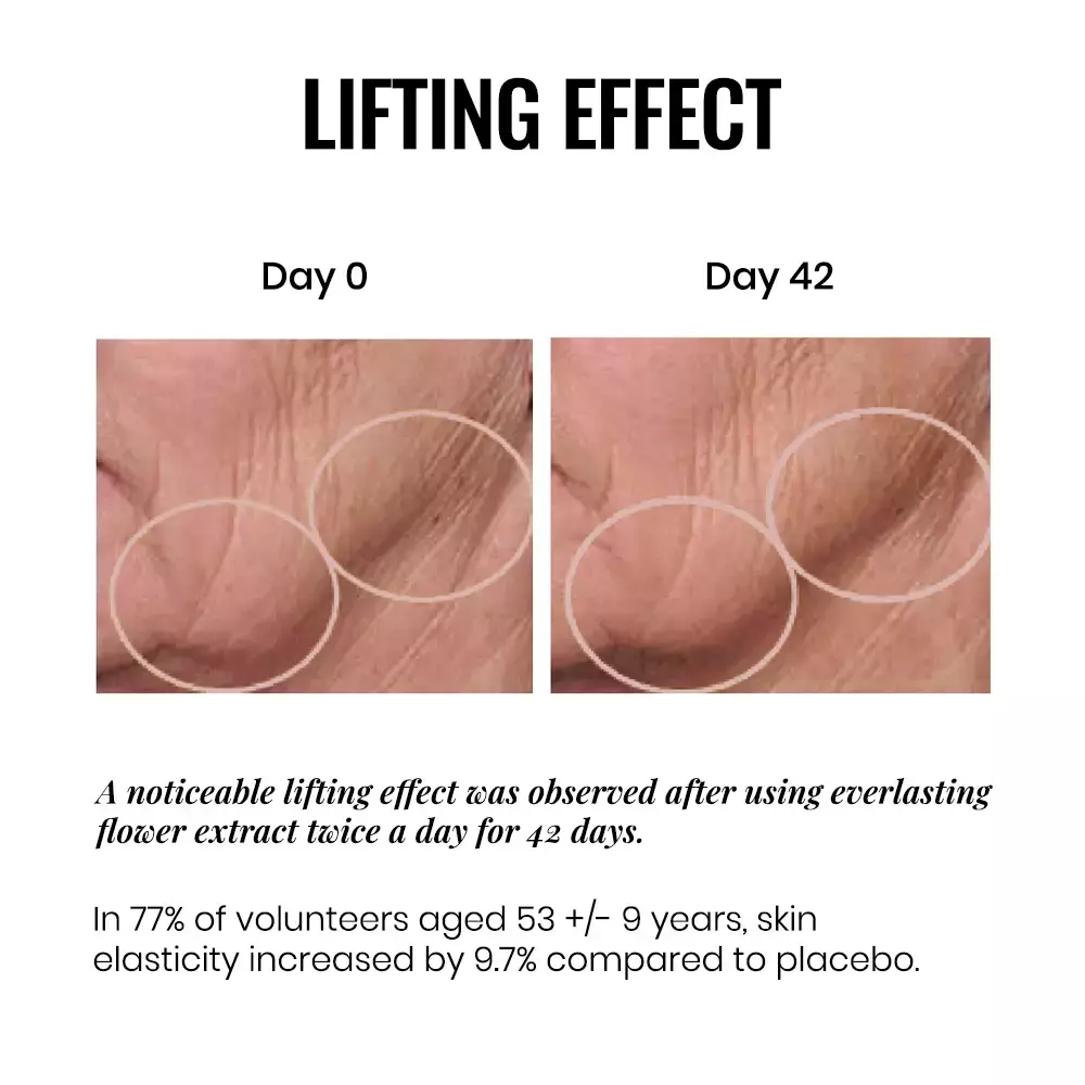 - Екстракт безсмертника, що є рослинним аналогом колагену, добре тонізує шкіру;