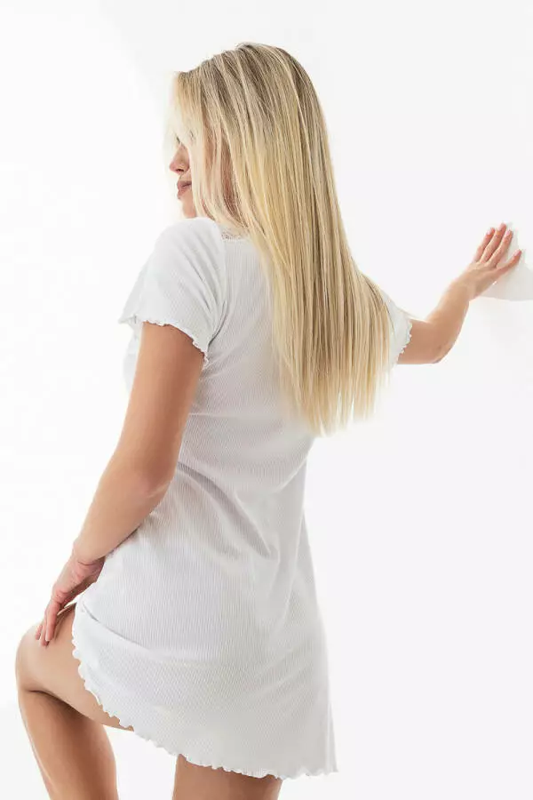Нічна жіноча сорочка із трикотажу в рубчик із мереживом German Volf Білий XS(40)