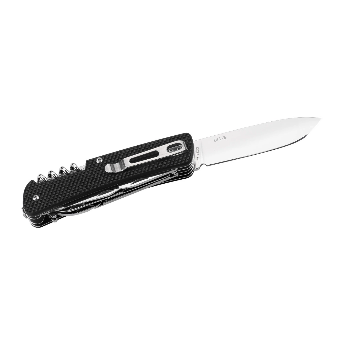 Крім ножа власник Ruike L41 може використовувати, коли це буде потрібно, пилку для дерева, стропоріз, маленьку і середню викрутки з прямим шліцом, спеціальний інструмент для зачистки від ізоляції проводів. Тут також є штопор і відкривачка для пляшок, що для відпочинку на природі буває не менш актуальним, ніж наявність інших інструментів. Ще пара додаткових інструментів розміщені на торці рукоятки ножа. Це стальний склобій і невелике кільце, яке можна використовувати для фіксації темляка.