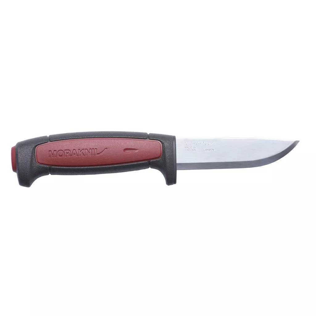 Для виготовлення леза, була застосована нержавіюча сталь з додаванням вуглецю, що збільшило міцність і зносостійкість, але знизило стійкість до іржі. Тому виробник рекомендує після застосування ножа у вологих умовах, обов'язково протирати лезо насухо. Ручка зроблена з пластику темно-червоного кольору з написом Morakniv і гумовою накладкою, збільшує тертя і дозволяє надійно тримати ножа в руці при роботі.