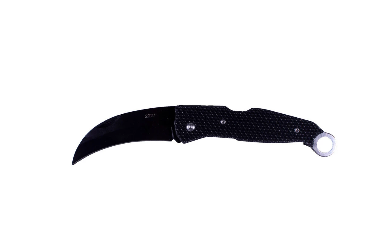 Ніж розкладний відмінної якості, чорного кольору, є кріплення для носіння на ремені