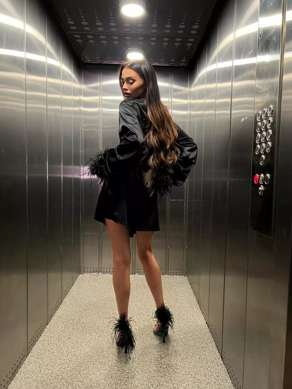 Ніжна сатинова сукня БОА з декорованими пір'ями чорного кольору