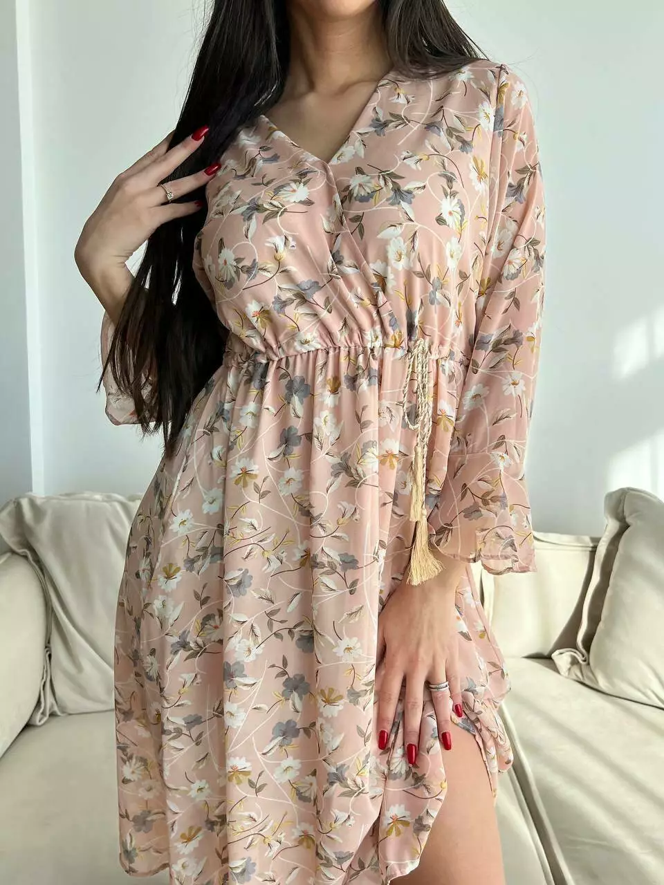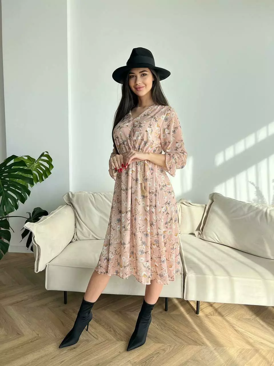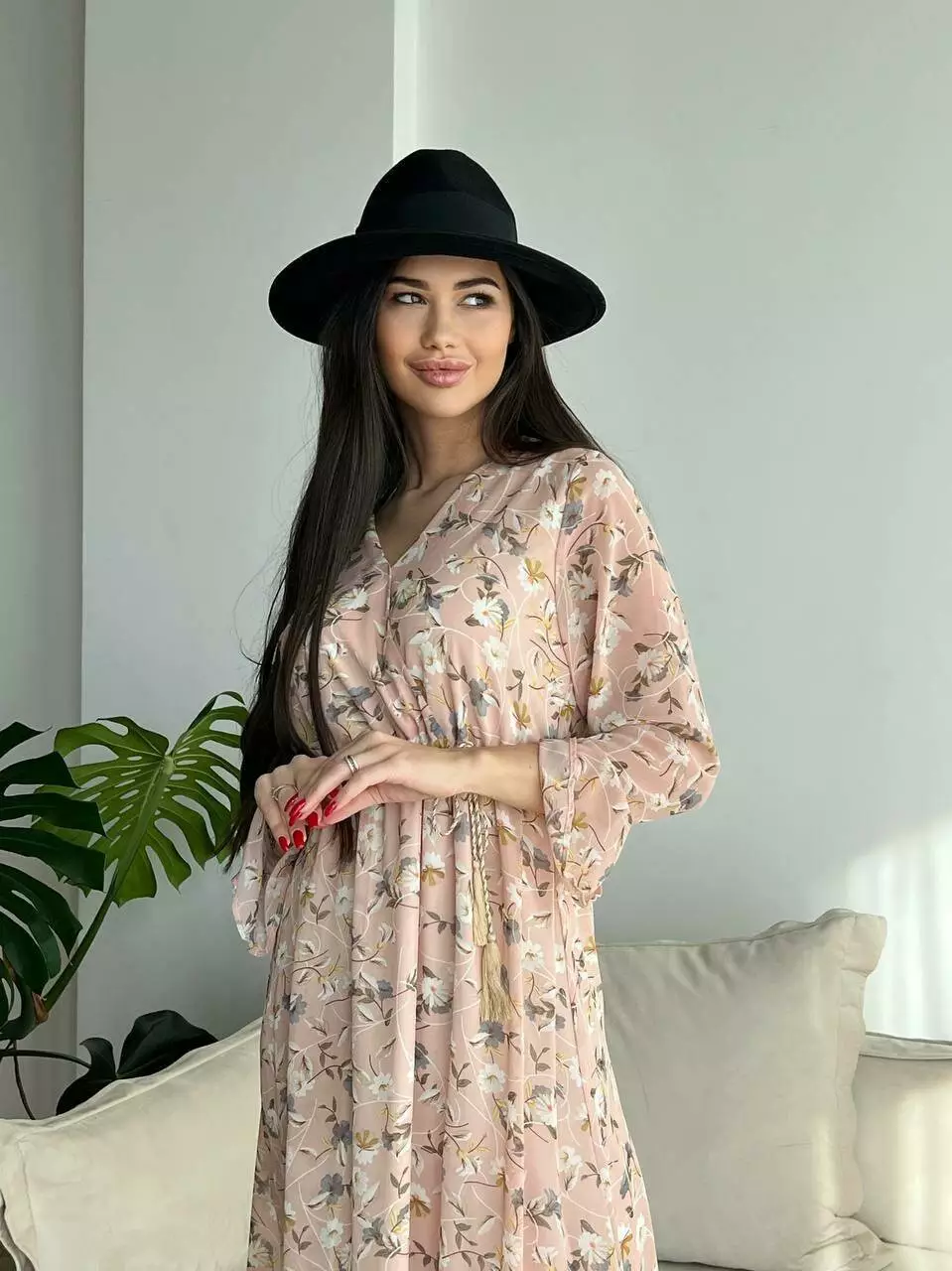 Ніжне жіноче шифонове плаття з квітковим принтом і довгим рукавом 661