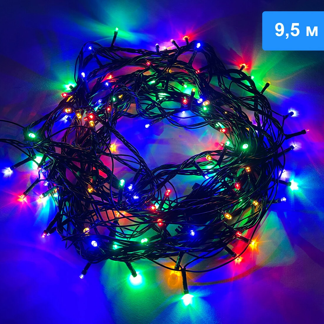 Новогодняя черная гирлянда с яркими разноцветными лампочками 10
