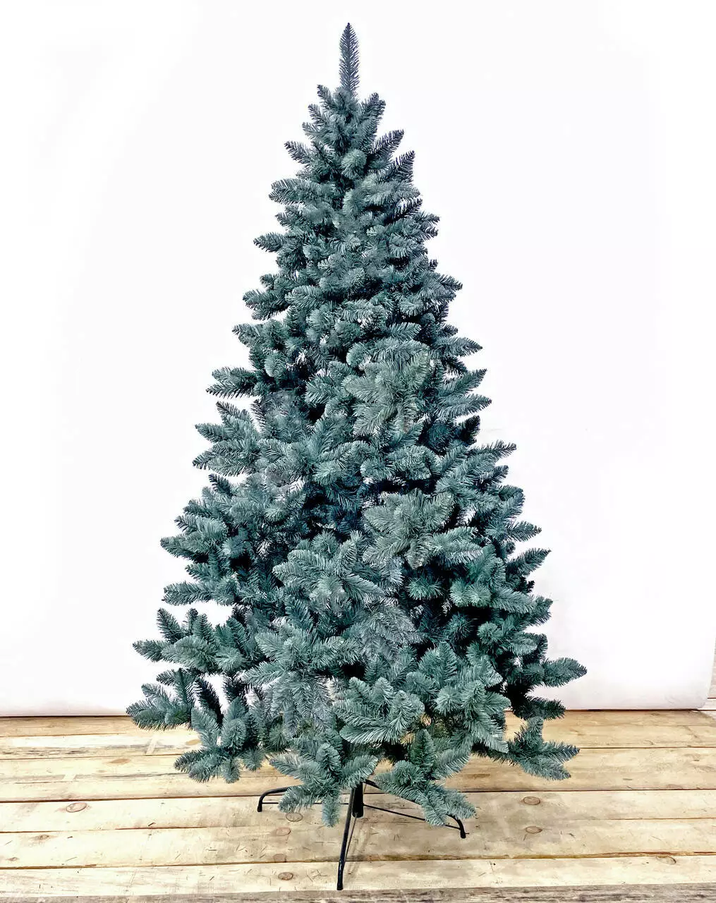 Чрезвычайно пышная новогодняя красавица. Густые ветви из четырёх слоёв полимерной плёнки имеют красивую заострённую на кончиках форму. Хвоя благородного голубого цвета, как у живой ели.