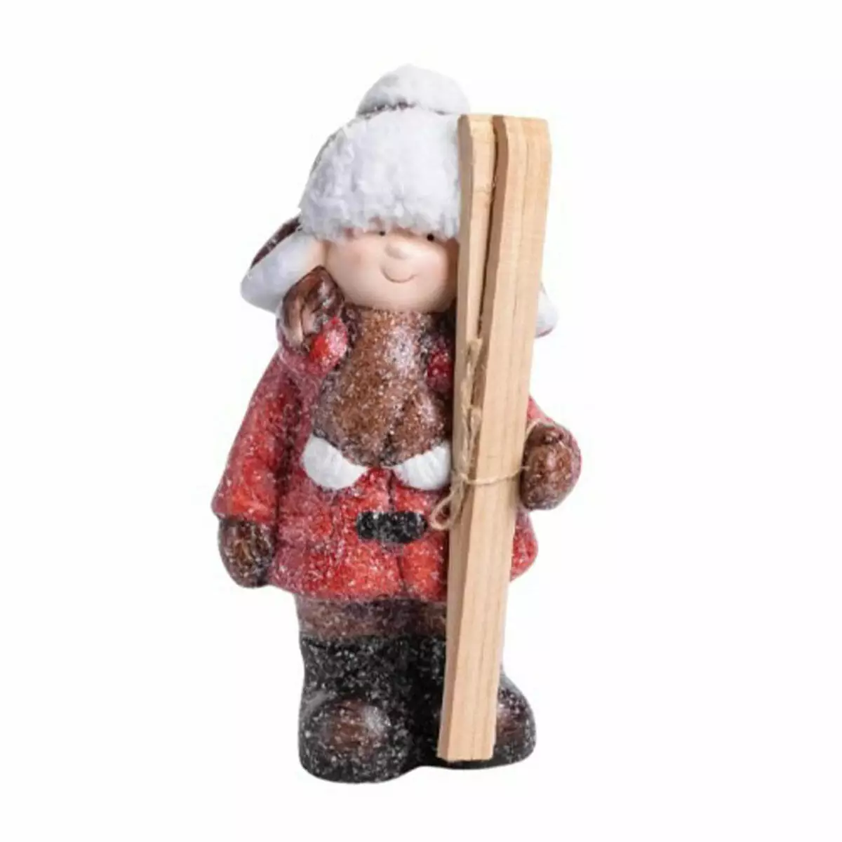 Новорічна фігурка Дівчинка з лижами порцелянова 12*11*23 см