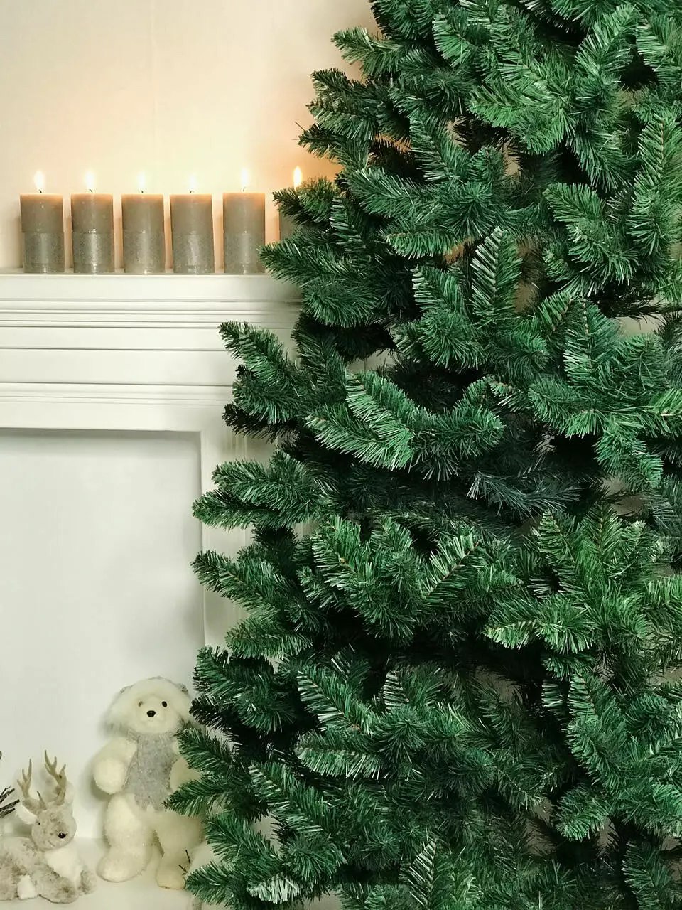 Надзвичайно пишна новорічна красуня. Густі гілки з чотирьох шарів полімерної плівки мають гарну загострену на кінчиках форму. Хвоя зеленого кольору, а серединка гілки коричнева, як у живої ялинки.