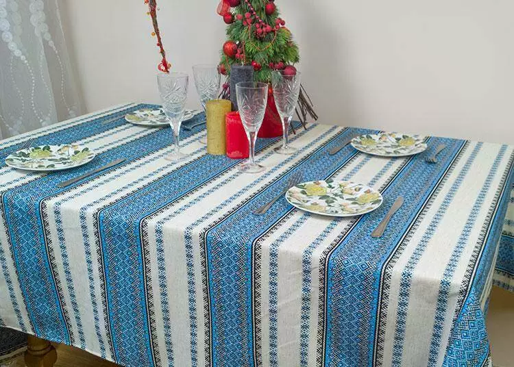 Новорічна скатертина з народним орнаментом 180х145 см, Скатертина, Синій