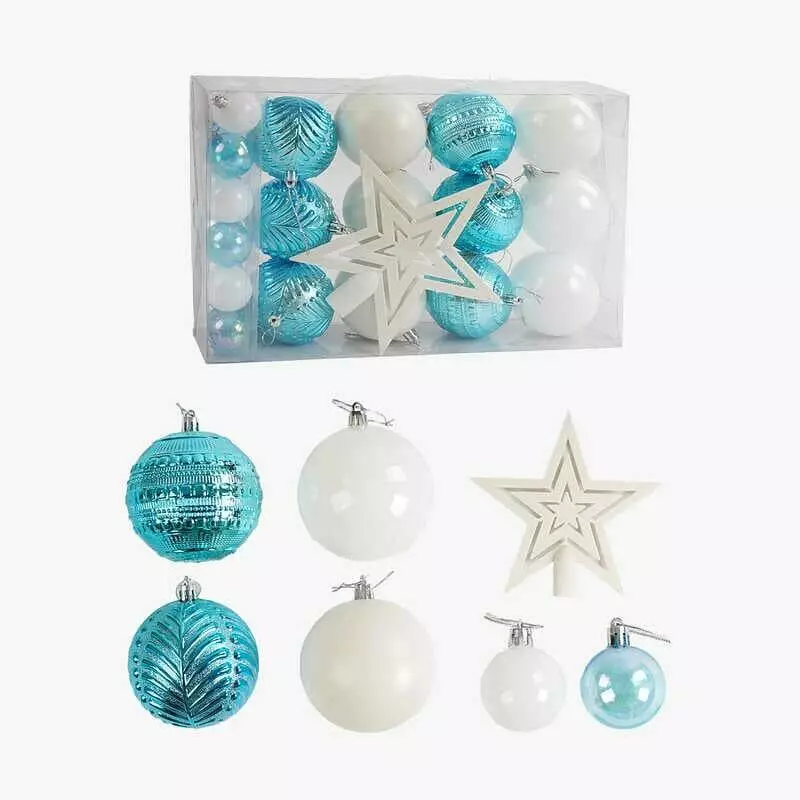 Новорічні прикраси C 67499 (32) 24 штуки, зірочка-верхівка, кульки, maх D=8, min D=4 см, у слюді