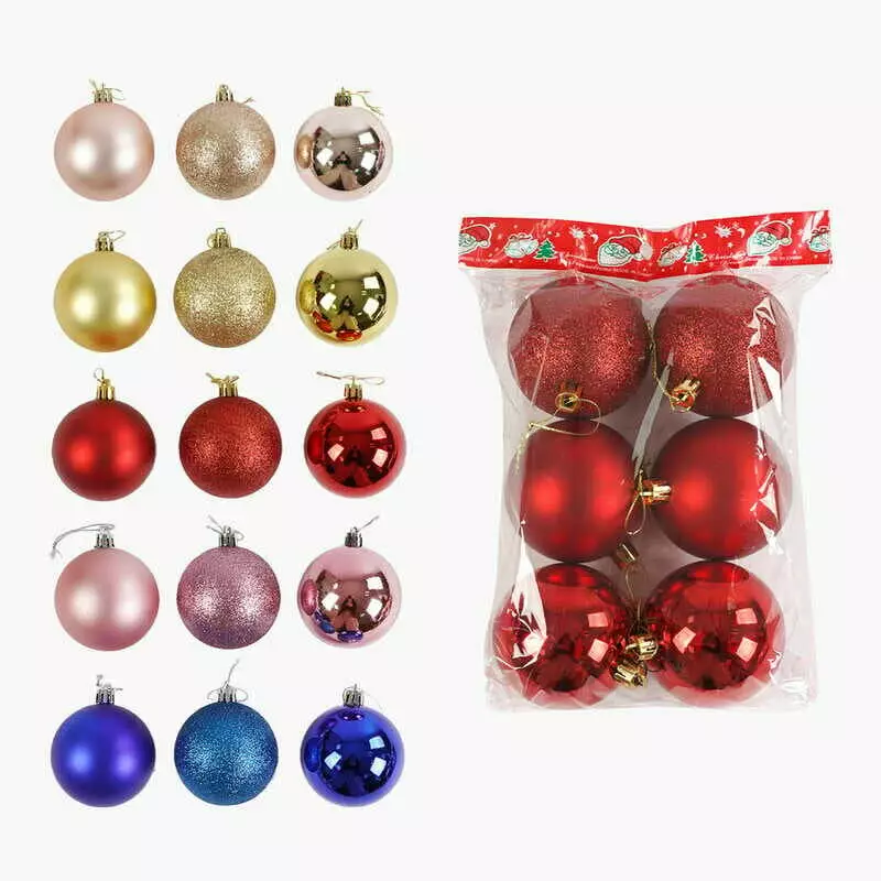 Новорічні прикраси C 67737 (100) 5 видів, кульки, 6 штук, D=7 см, у пакеті, ВИДАЄТЬСЯ МІКС ВИДІВ