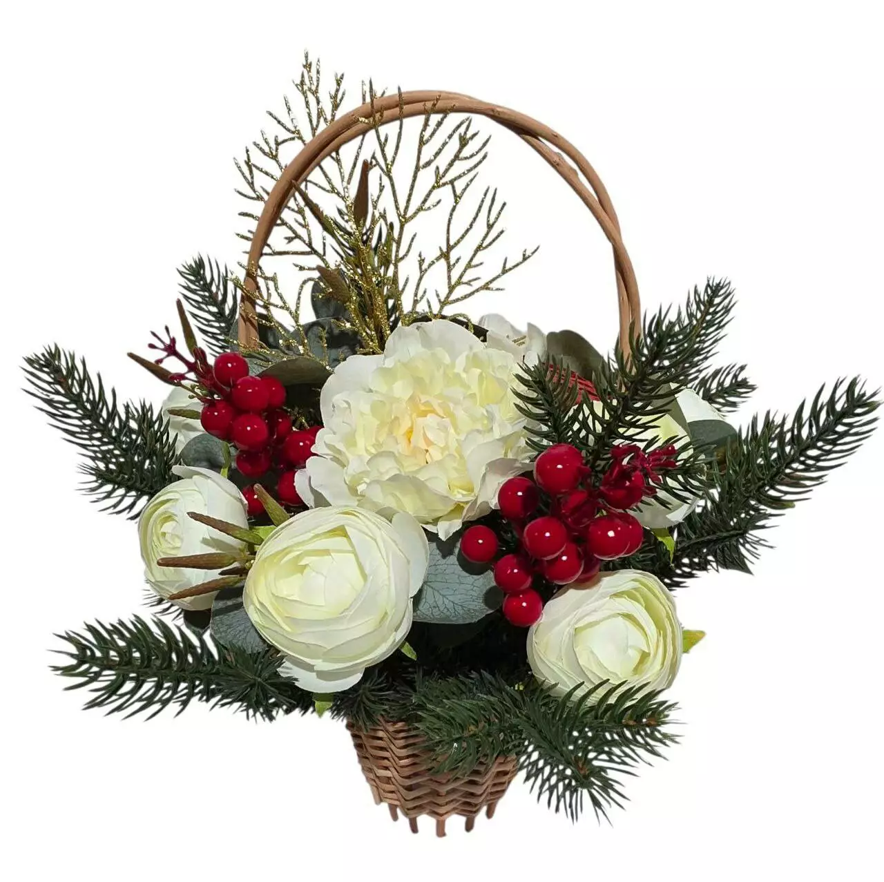 Новорічний кошик 37*35 см, прикрашений гілками штучної ялинки,