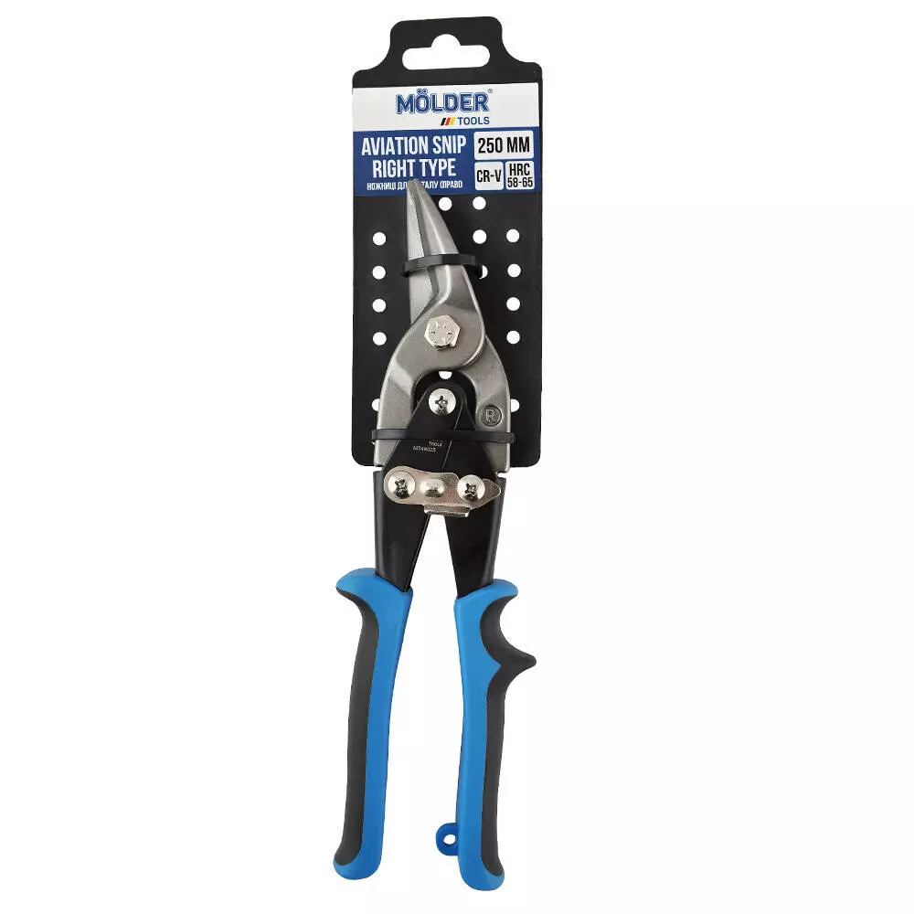 Ножиці по металу праві MOLDER 250мм, 60Cr-V, HRC 58-65, поліровані, двокомпонентна (48шт/ящ)