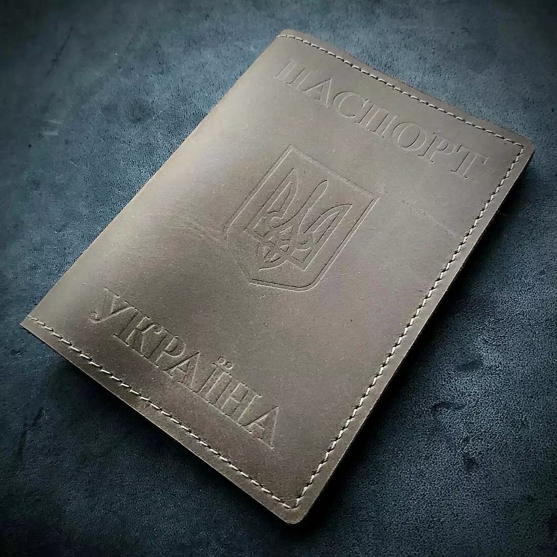 Обкладинка на паспорт України виконана із щільної вінтажної  шкіри Crazy Horse. Колір коричневий