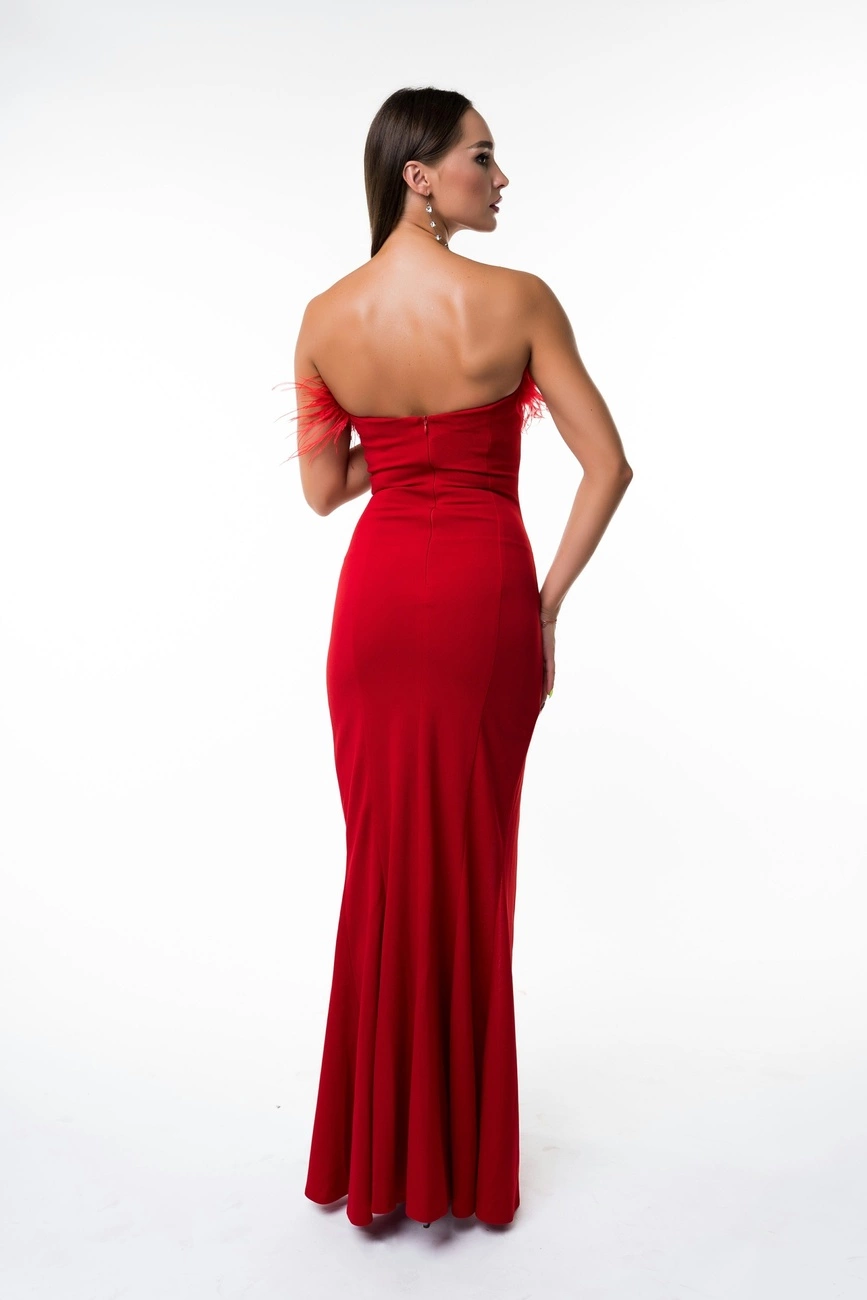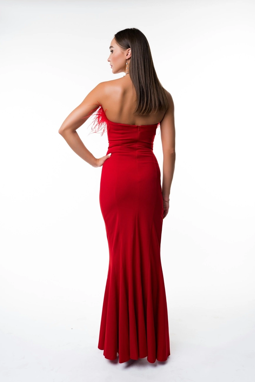 Облегающее вечернее платье с перьями страуса