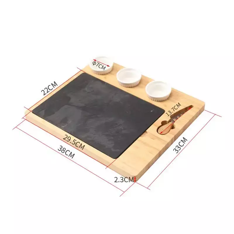 Комплектація: дошка, ніж для сиру, 3 керамічних соусники