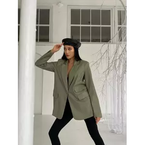 Однотонний жіночий піджак Sakura з екошкіри LUX якості оливкового кольору