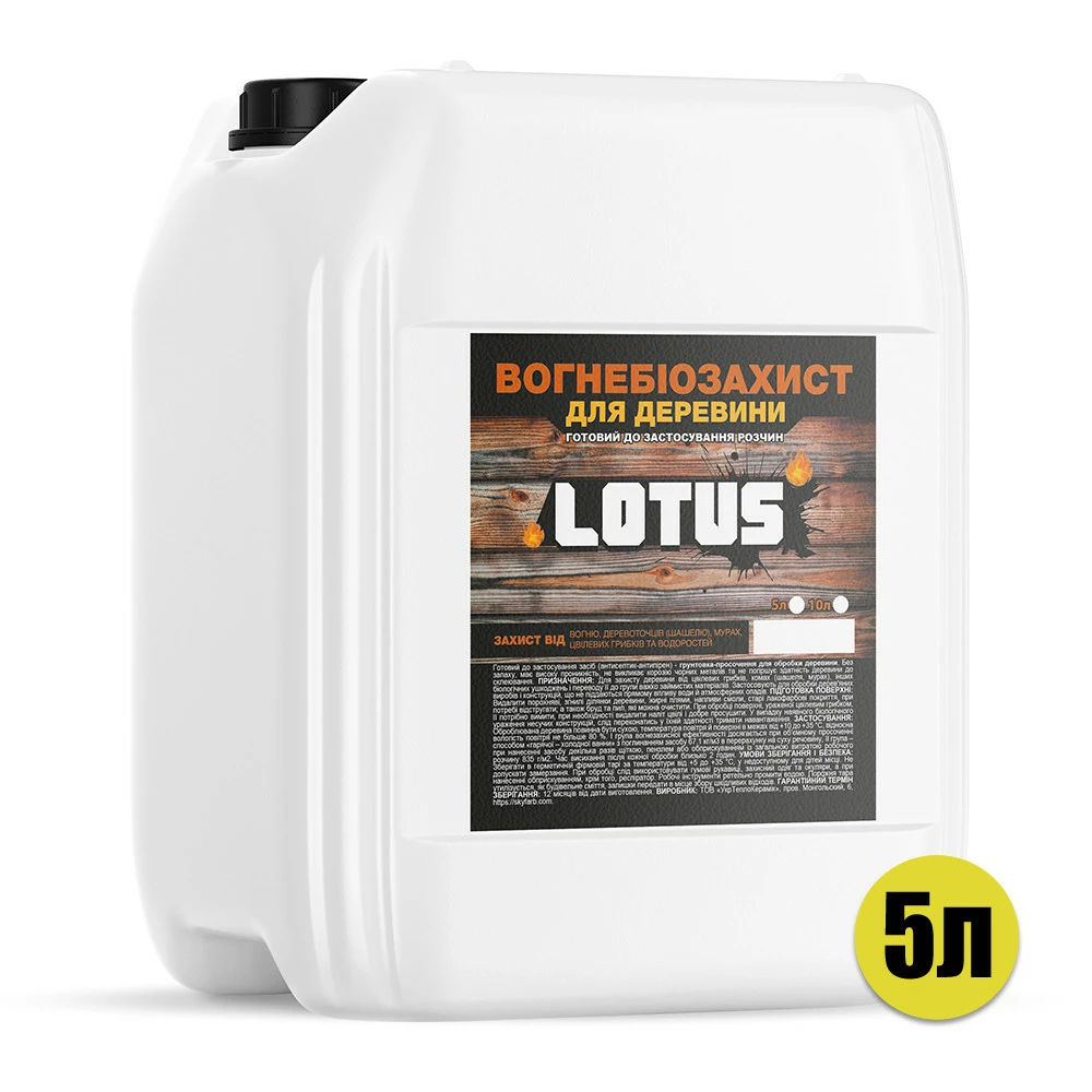 Огнебиозащита грунтовка-пропитка для дерева LOTUS Бесцветная 5л