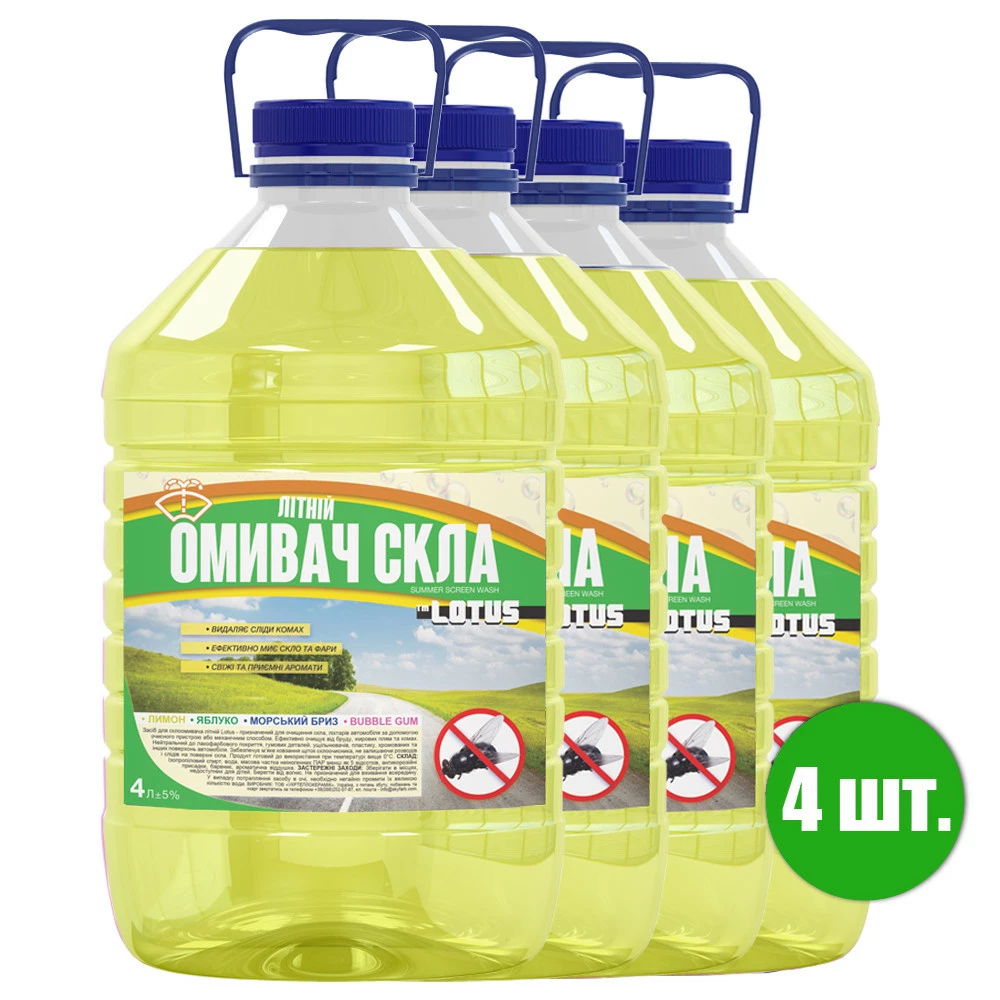 Омыватель стекла Летний "Лимон" Lotus УПАКОВКА 4 шт. x 4 л