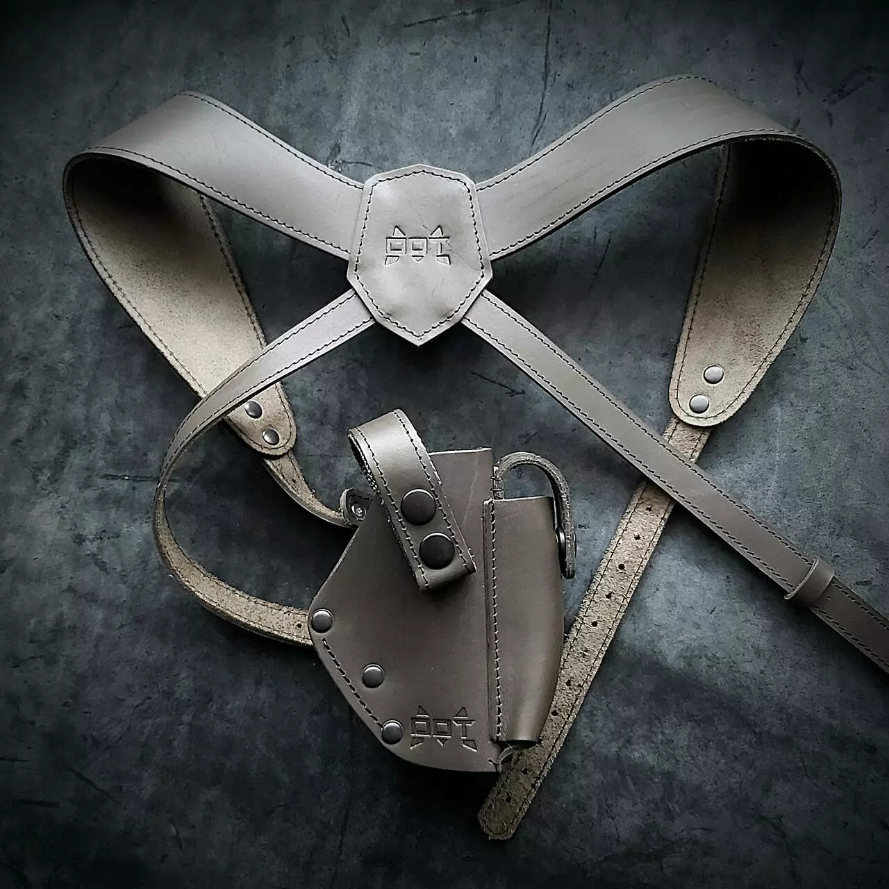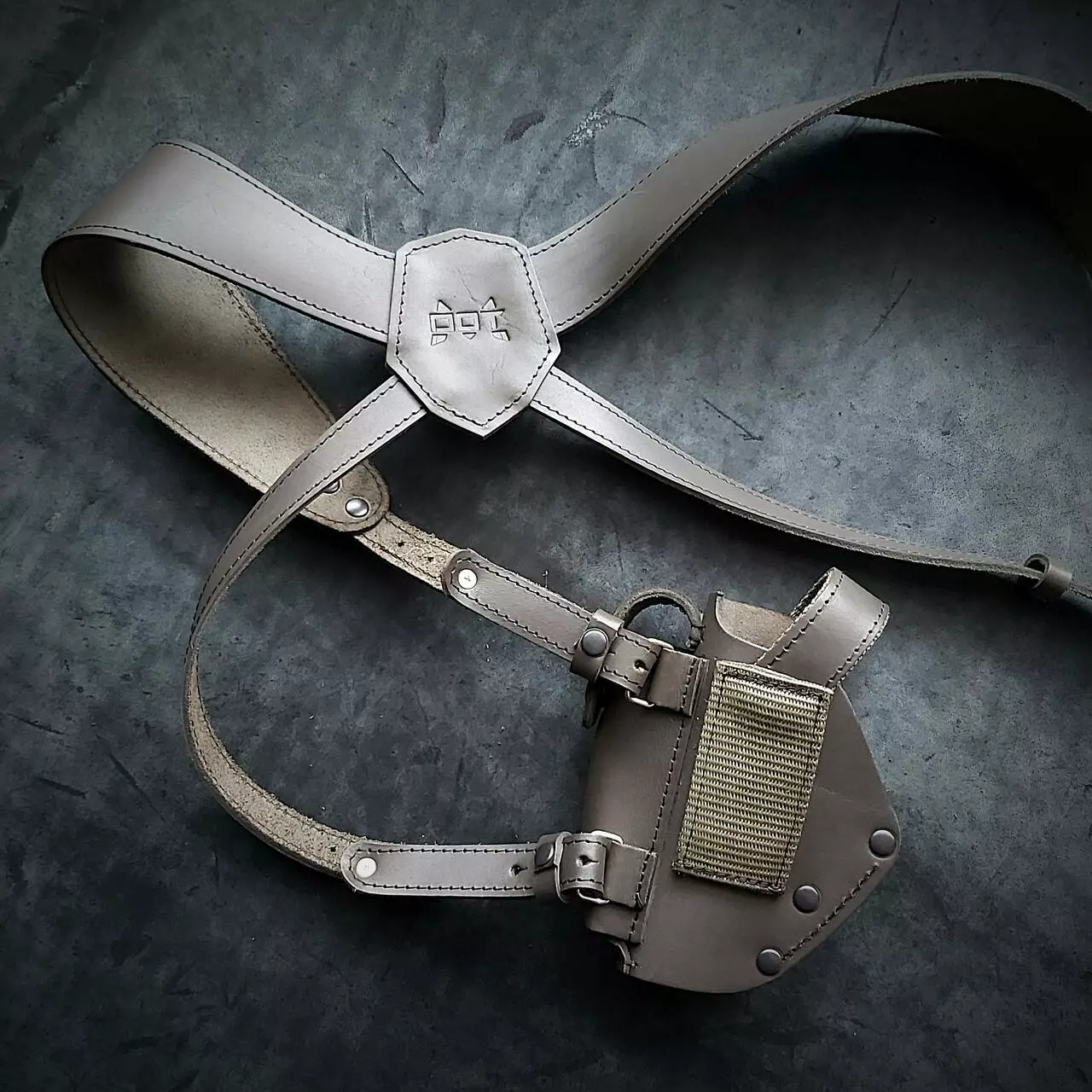 • Кобура до наплічної системи кріпиться на кобурних болтах. Пістолет фіксується на двох кнопках.
