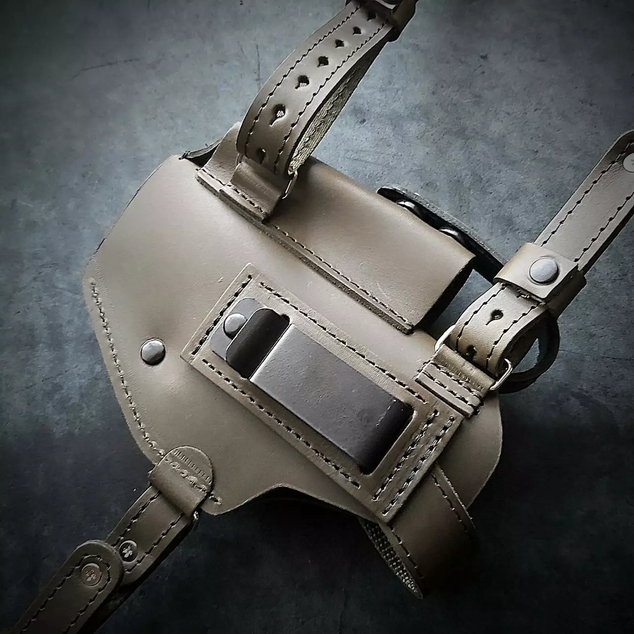 • Кобура знімається з наплічної системи і можна носити на ремені шириною 5 см. на скобі або простягнувши ремінь через отвір