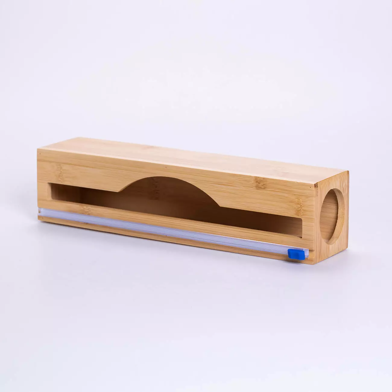 Бамбуковий органайзер для харчової плівки — це компактний аксесуар, який дозволяє акуратно зберігати рулон фольги, плівки або пергаменту, забезпечуючи легкий доступ до них. Завдяки природному матеріалу та нейтральному дизайну, він легко інтегрується в більшість кухонних інтер'єрів.