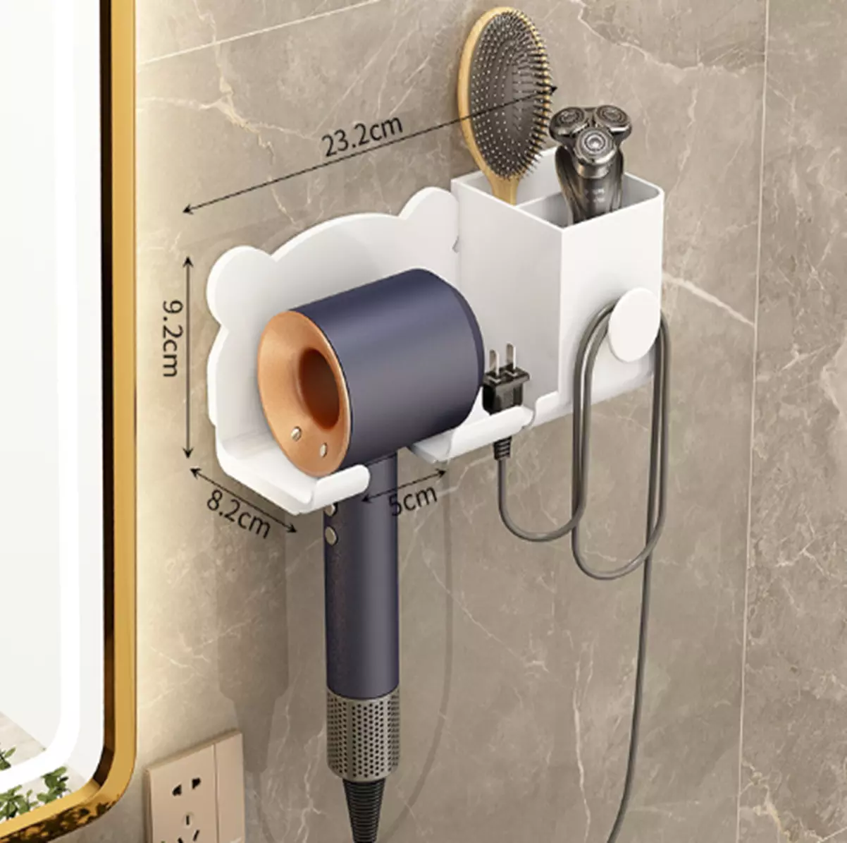 Стильный настенный держатель для фена с органайзером отлично