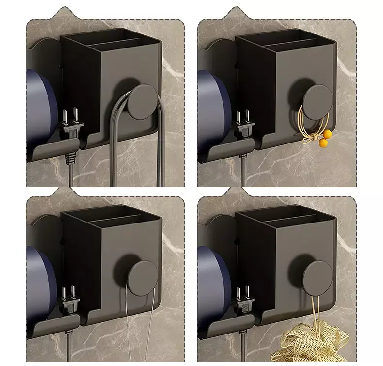 Стильный настенный держатель для фена с органайзером отлично