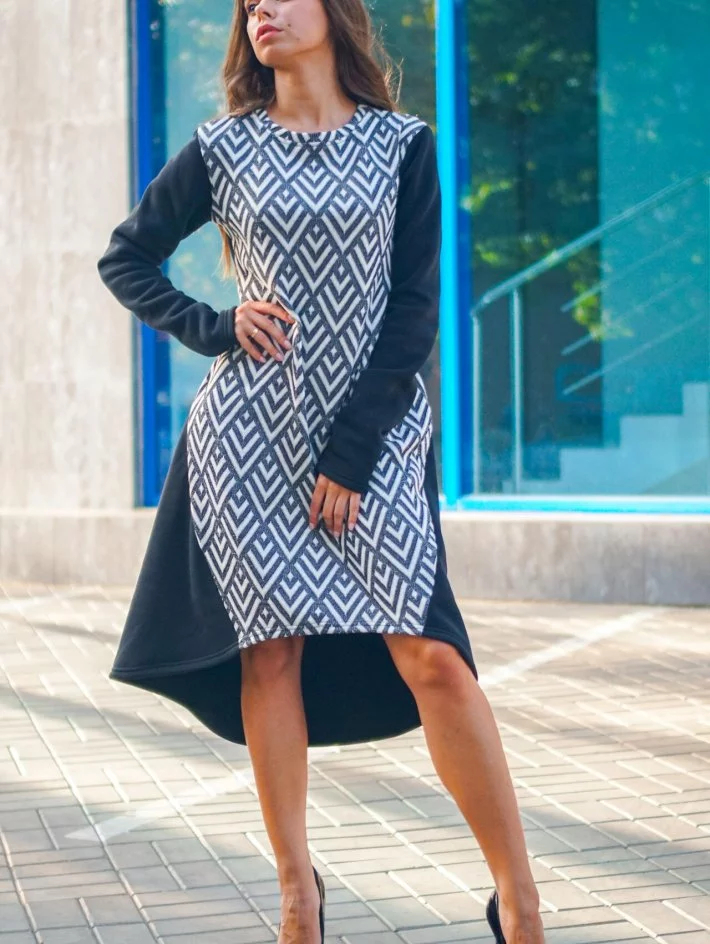 Оригінальна сукня незвичайного крою, передня частина сукні