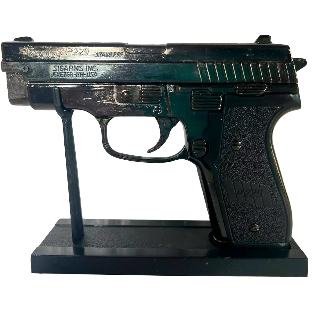 Оригинальная зажигалка в виде пистолета SIG Sauer P229 — эффектный аксессуар с реалистичным дизайном, выполненный в форме легендарного огнестрельного оружия. Модель отличается высокой детализацией корпуса, металлическим блеском и эргономичной формой, благодаря чему выглядит максимально правдоподобно.