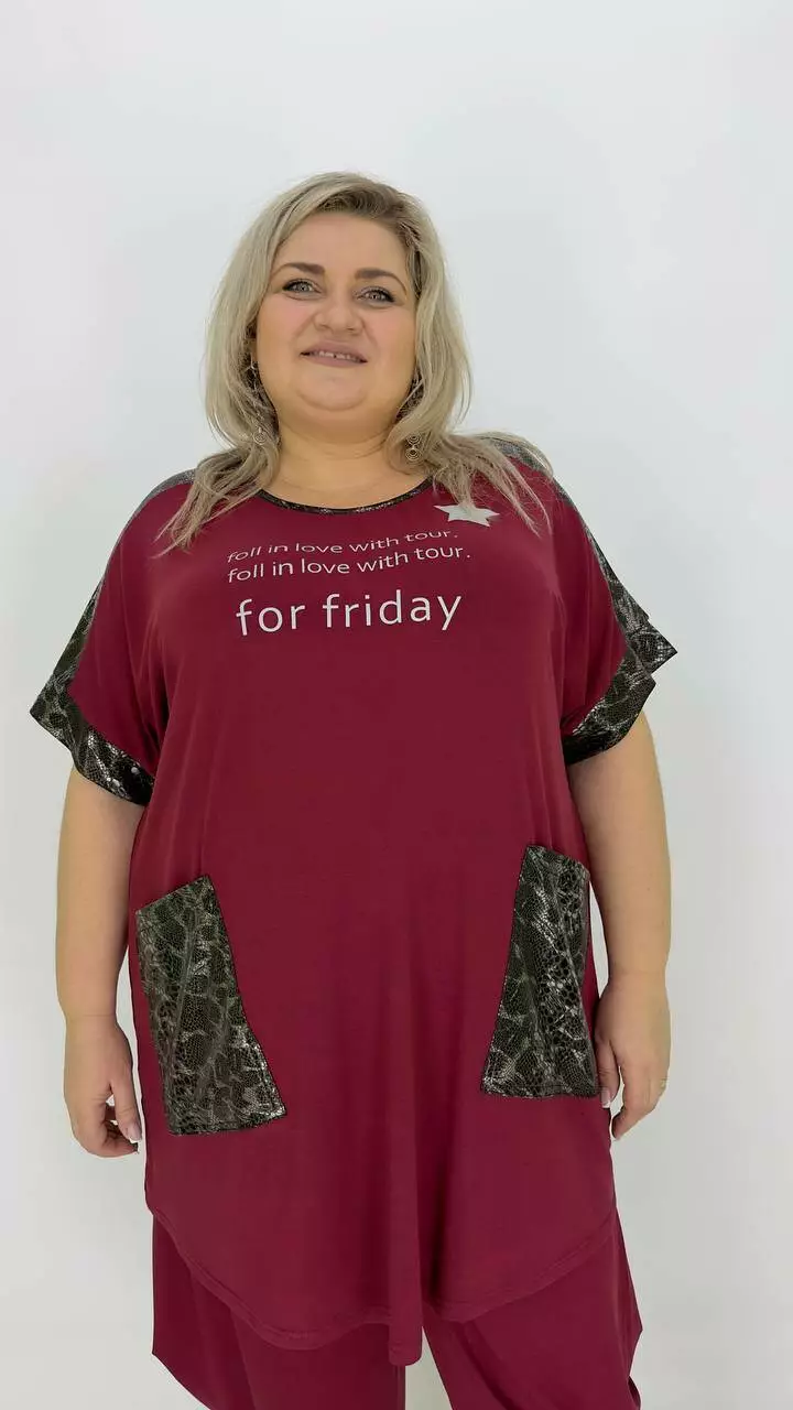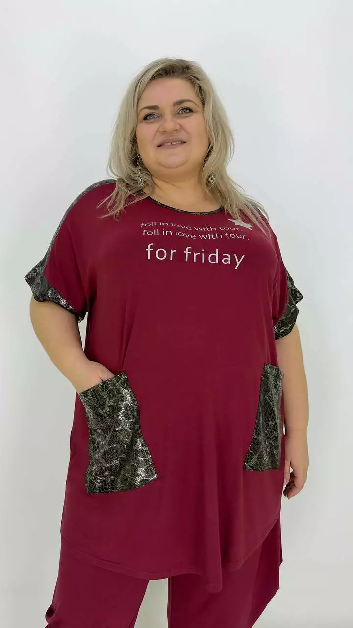Туніка із трикотажної віскози вільного силуету зі спущеним плечем. Світловідбиваючий накат