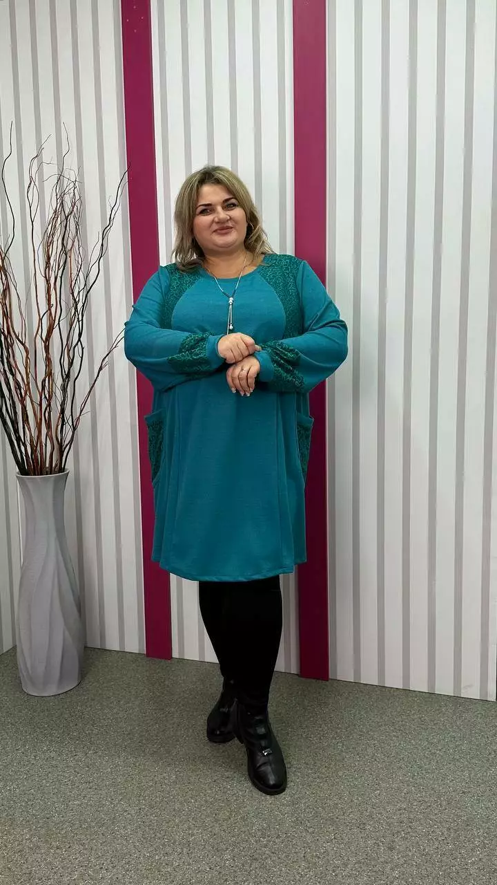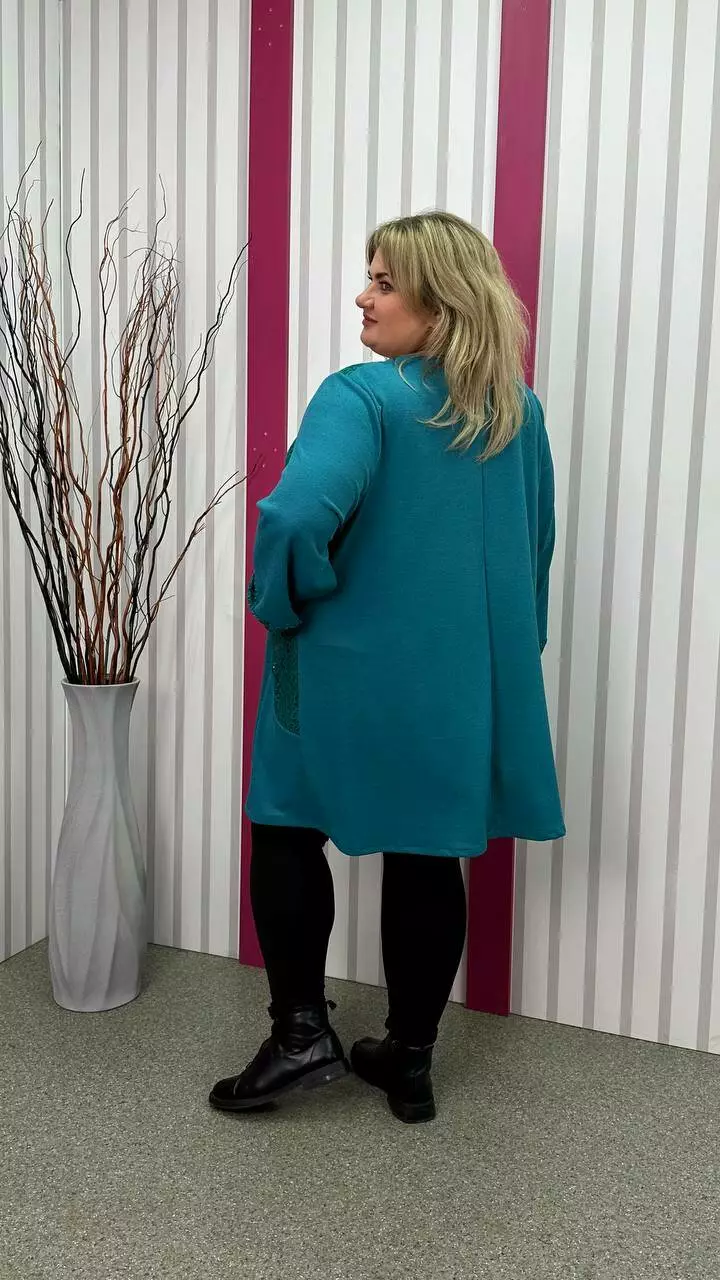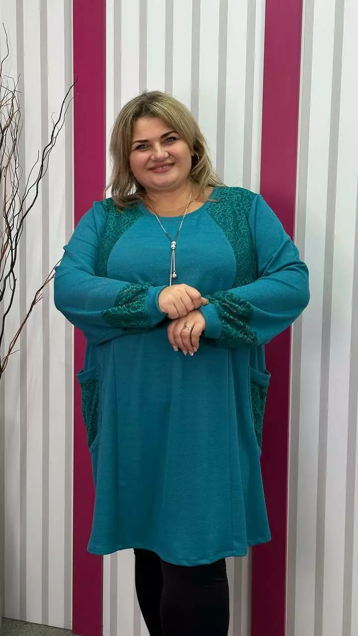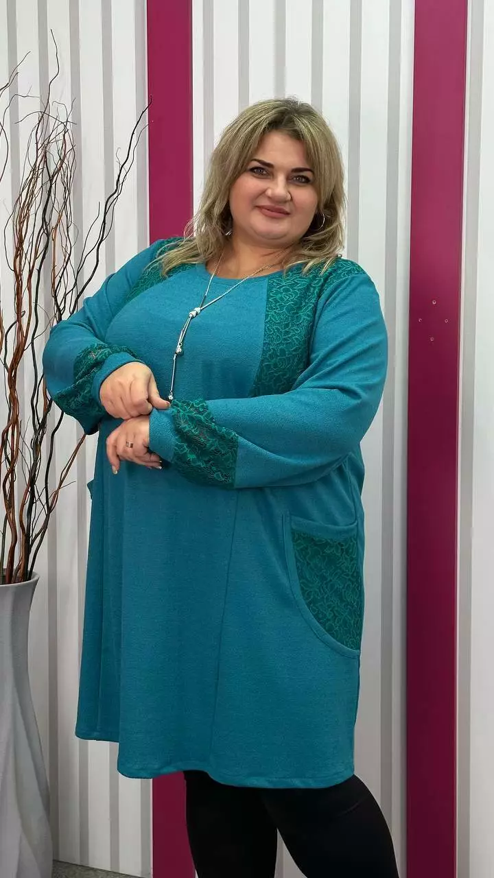 Ошатна туника комбінована гіпюром, рукав довгий. горловина кругла. дві кишені