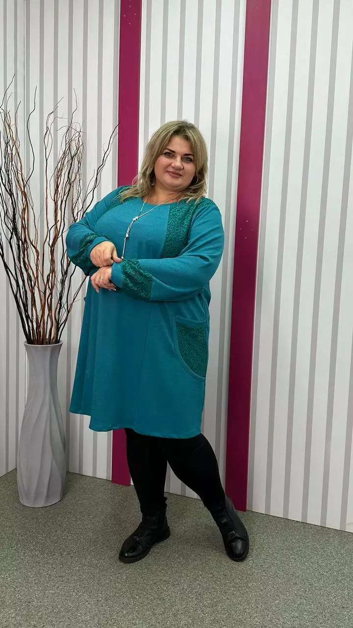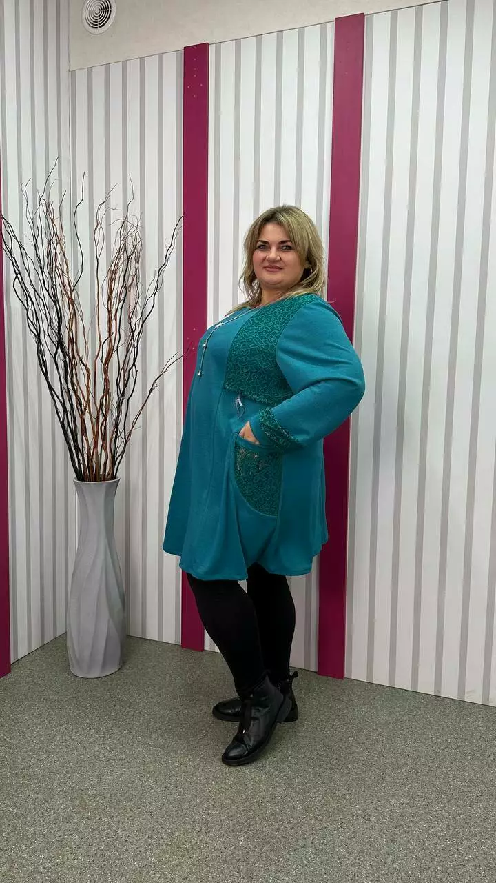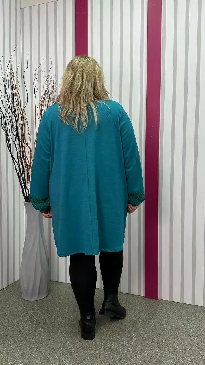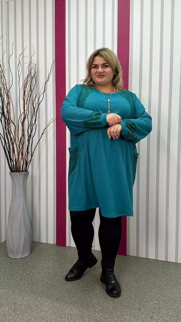 Ошатна туника комбінована гіпюром, рукав довгий. горловина кругла. дві кишені