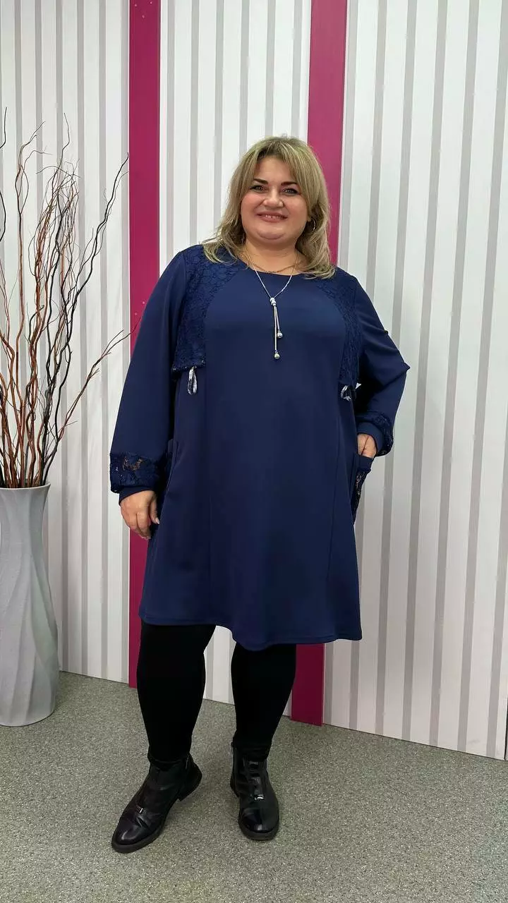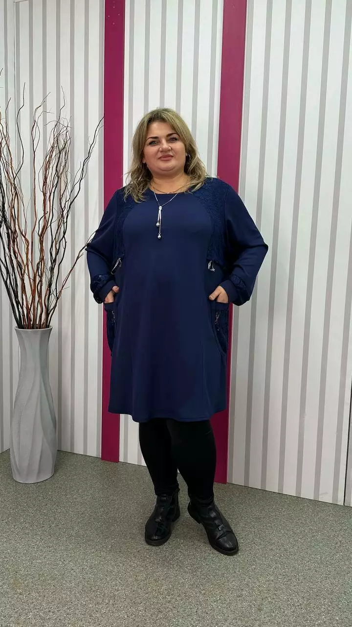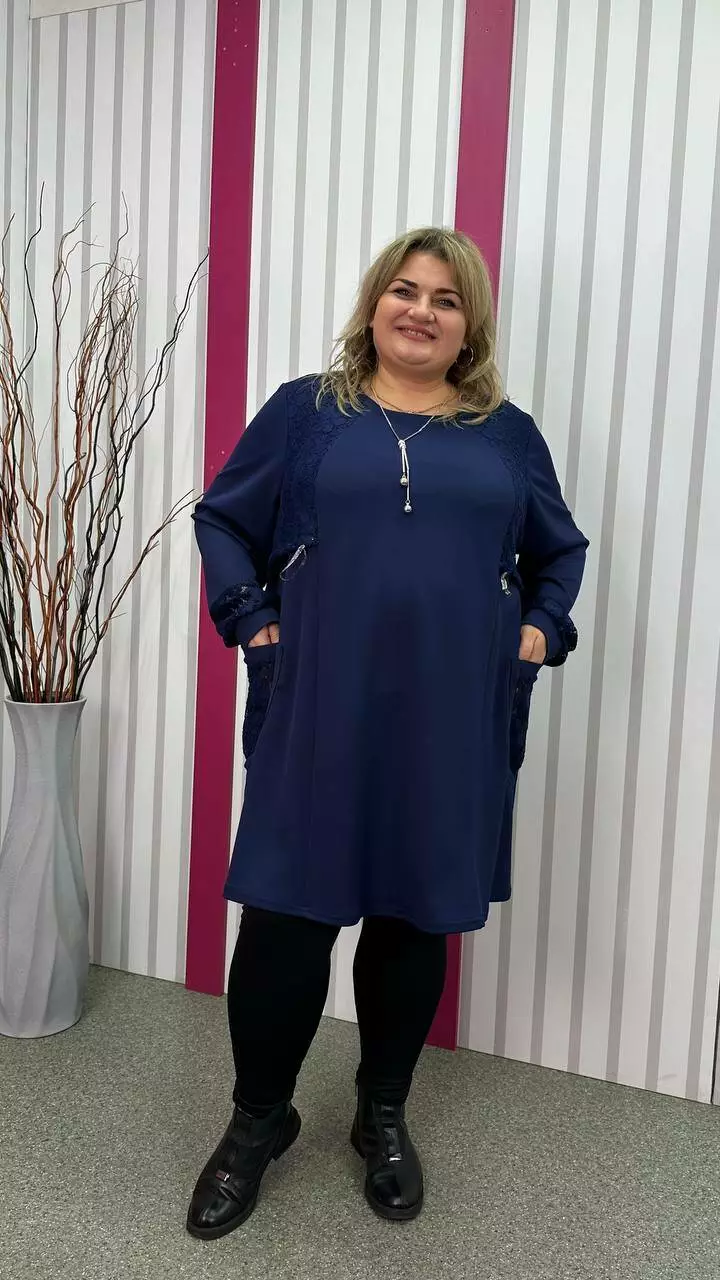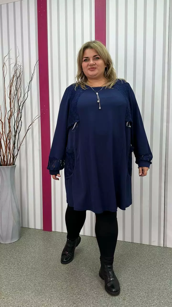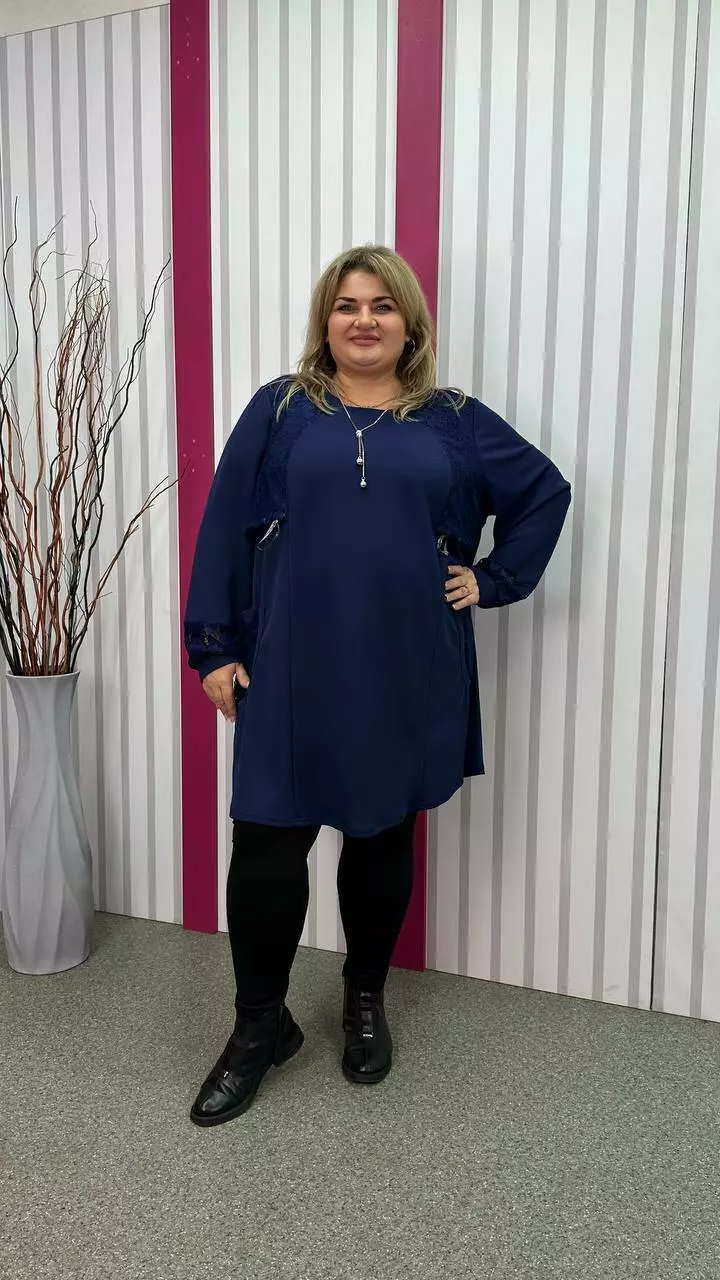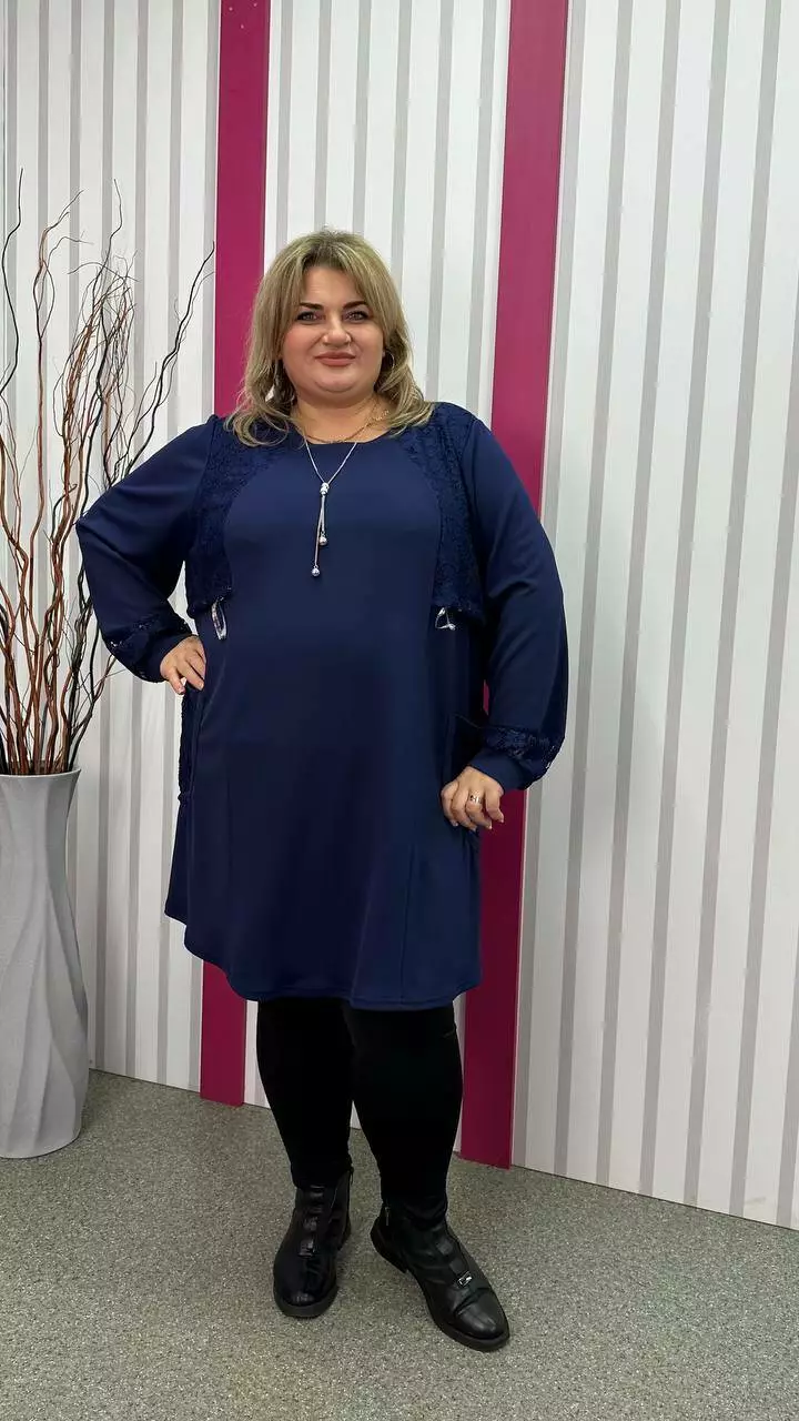 Ошатна туника комбінована гіпюром, рукав довгий. горловина кругла. дві кишені