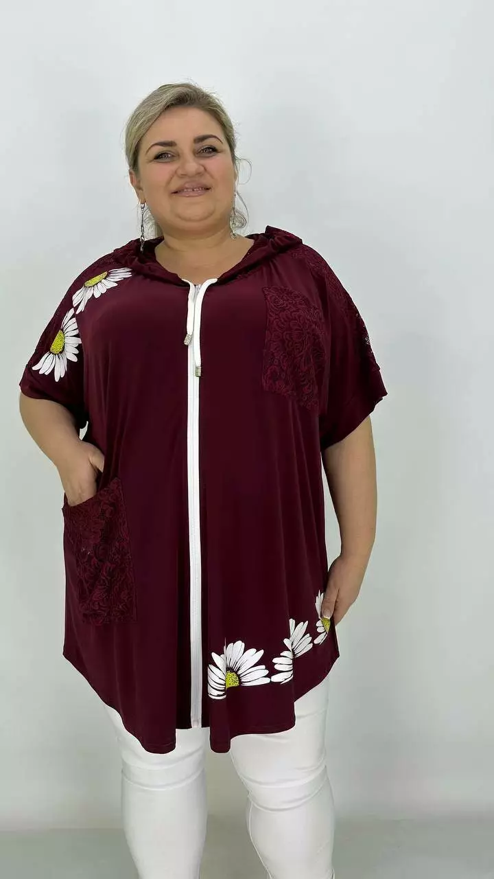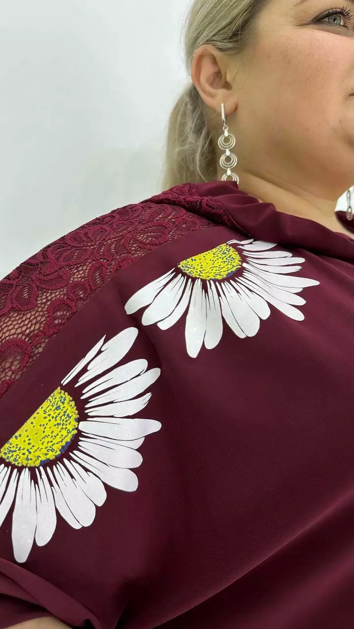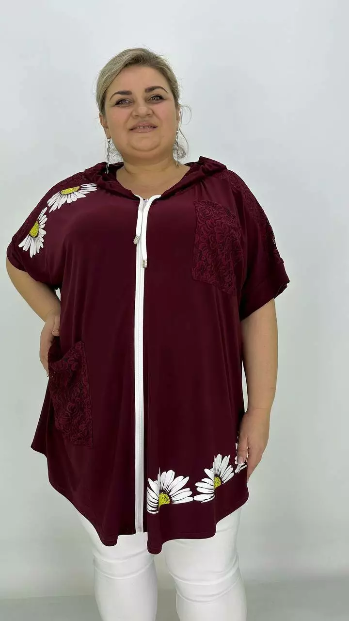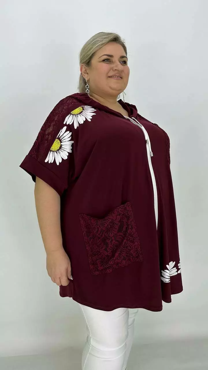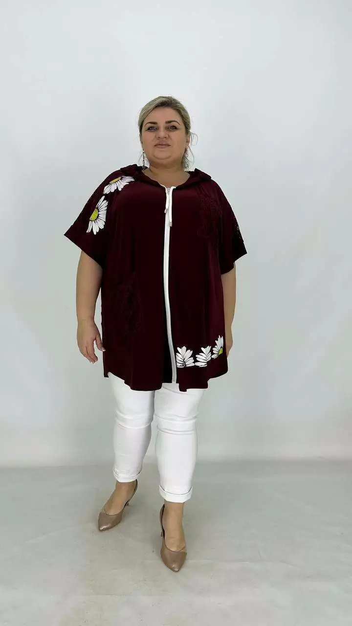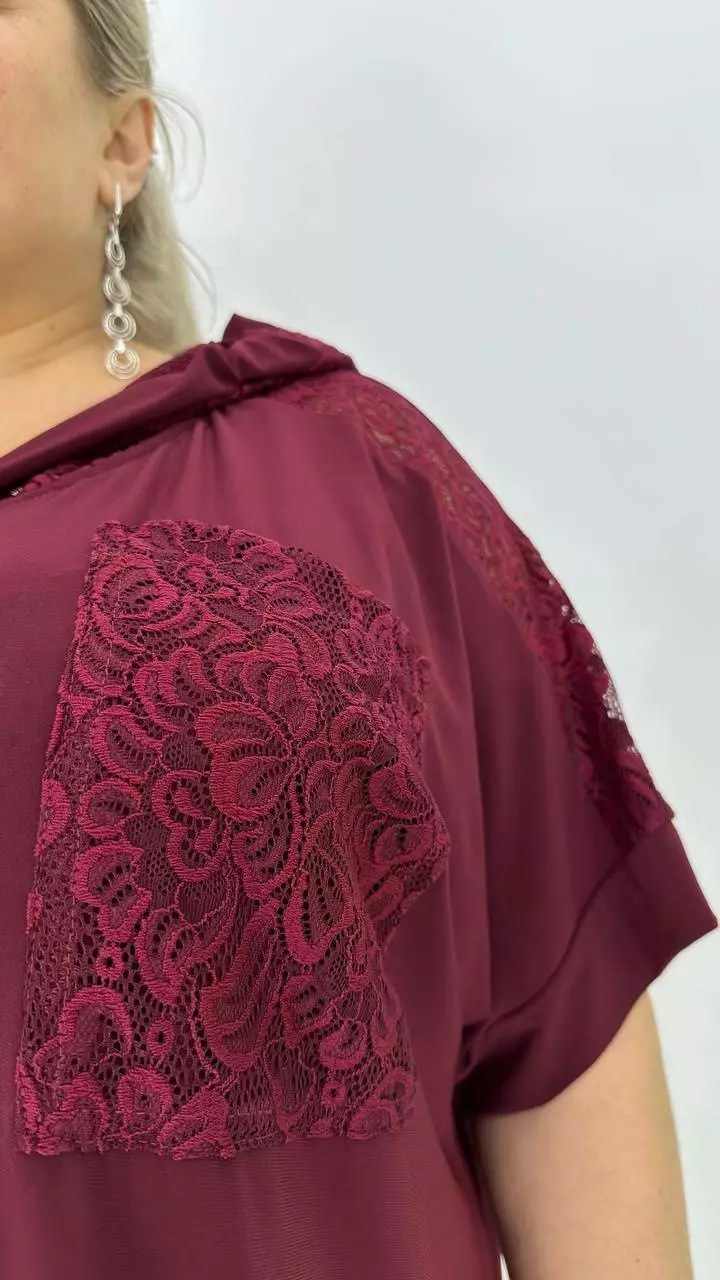 Ошатна кофта з трикотажу-корейська олія комбінована зі стрейчевим гіпюром, не мнеться і хороша розтяжність. Вільний крій, спущене плече, прикрашений якісним накатом. Прати лише у делікатному режимі.
