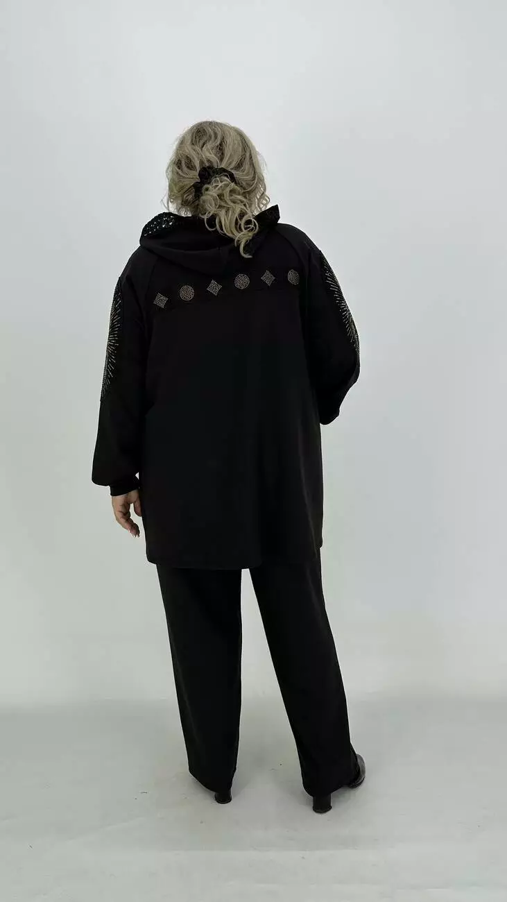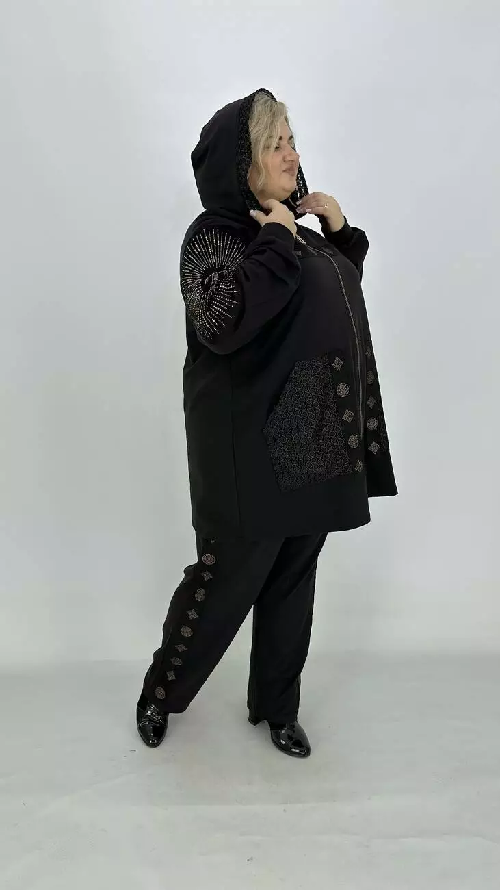 Стильний костюм з трикотажу двонитка - спів пр-ва Туреччина бавовна, не кашлатиться, не меніться, з гарною розтяжністю. Якості тканини - супер!  Костюм прикрашений пришивними стрічками з каменевим накатом. Вільний стиль - кофта оверсайз, підходить під будь-які груди, спущене плече, довжина рукава 5\6.