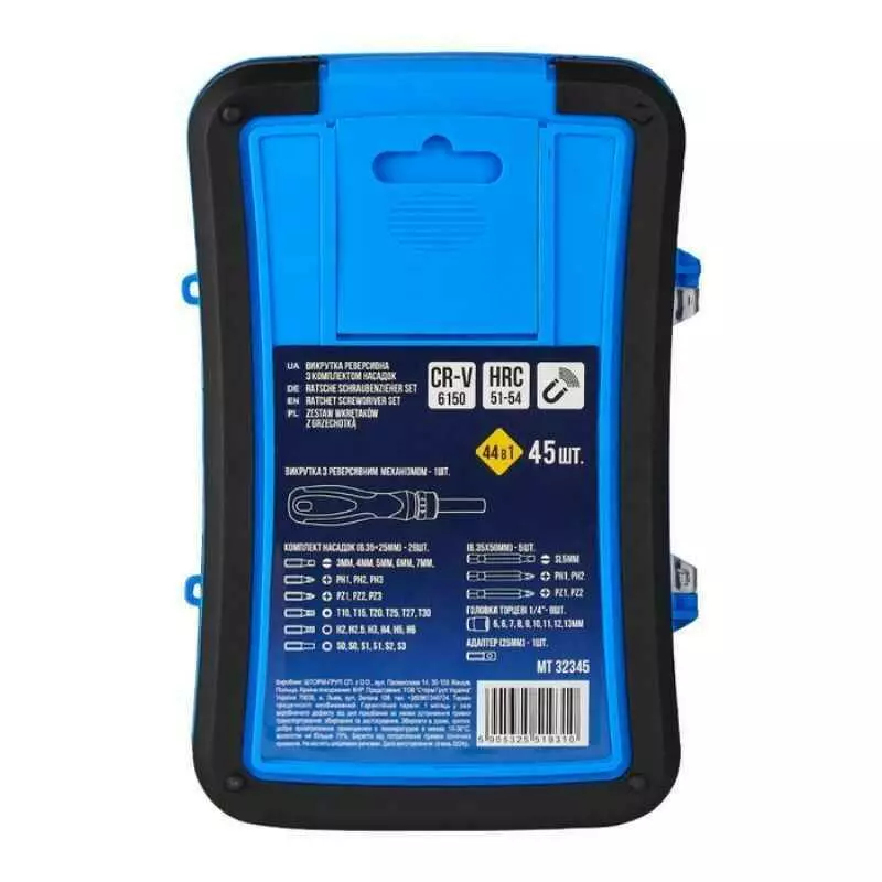 Отвертка реверсивная с битами 45шт Molder CrV с магнитным захватом PH PZ SL Torx Hex PL (MT32345)