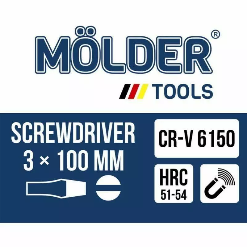 <p>Отвертка шлицевая Molder, SL3x100mm (12шт/уп)</p>