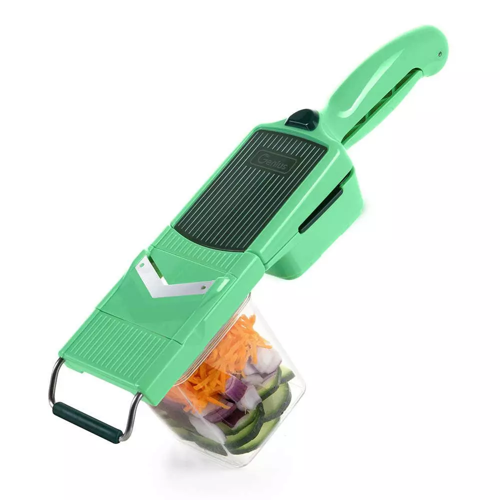 Genius Nicer Dicer Quick Professional — это овощерезка и слайсер в одном лице. Благодаря различным вставкам и пристегивающейся рамке умный кухонный гаджет обеспечивает еще больше инноваций и универсальности при нарезке. Комбинируемые режущие вставки овощерезки Genius сочетают в себе многочисленные варианты нарезки: ломтиками, кубиками, брусочками, ломтиками, соломкой, натертыми, нарезанными ломтиками и многими другими в одном приборе. Откройте для себя кухонный слайсер по-новому. Он сочетает в себе нарезку для лука, нарезку для огурцов, терку для картофеля и многое другое. Нарежьте мягкие или твердые фрукты и овощи, такие как кабачки, имбирь, помидоры, лук, грибы, лимоны и многое другое!