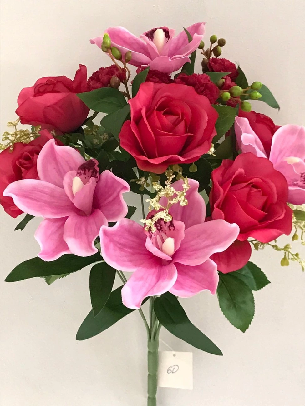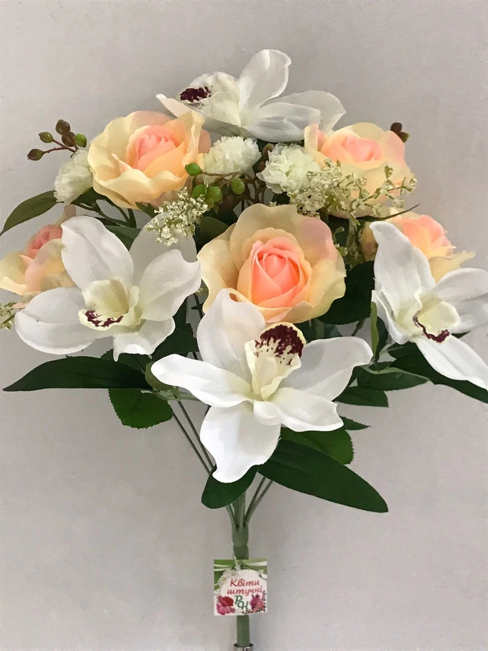 Искусственные цветы оптом класса ЛЮКС Роза+Ирис с мелкой гвоздикойД 60 не пресс