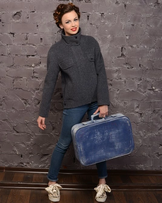 Полупальто молодежное из итальянской шерсти (90% шерсть, 10% синтетика). Крой прямой, курточный. Два накладных кармана (обманки) на груди, и два прорезных кармана. Застежка - потайная молния. Воротник стойка на кнопках. Длина изделия - 63 см. Размерный ряд модели - 42-50. Цвета в наличии - серый и горчица.