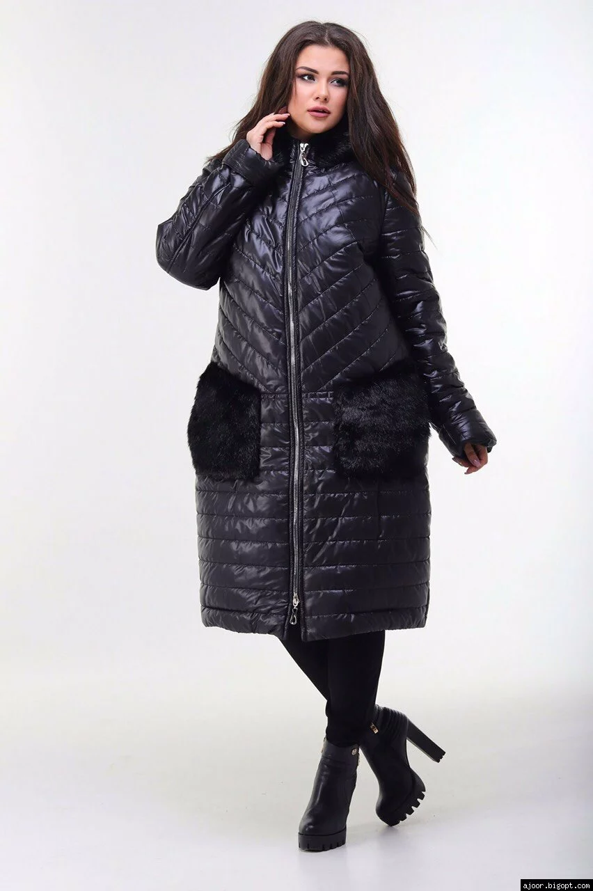Удлиненное пальто  батального размера выполнено  из стеганной плщевки ,подкладка  утеплена  силиконом,карманы  и опушка  капюшона отделаны  мехом ,разм 50,52,54,56,58 ,цвета черный,синий,пудра