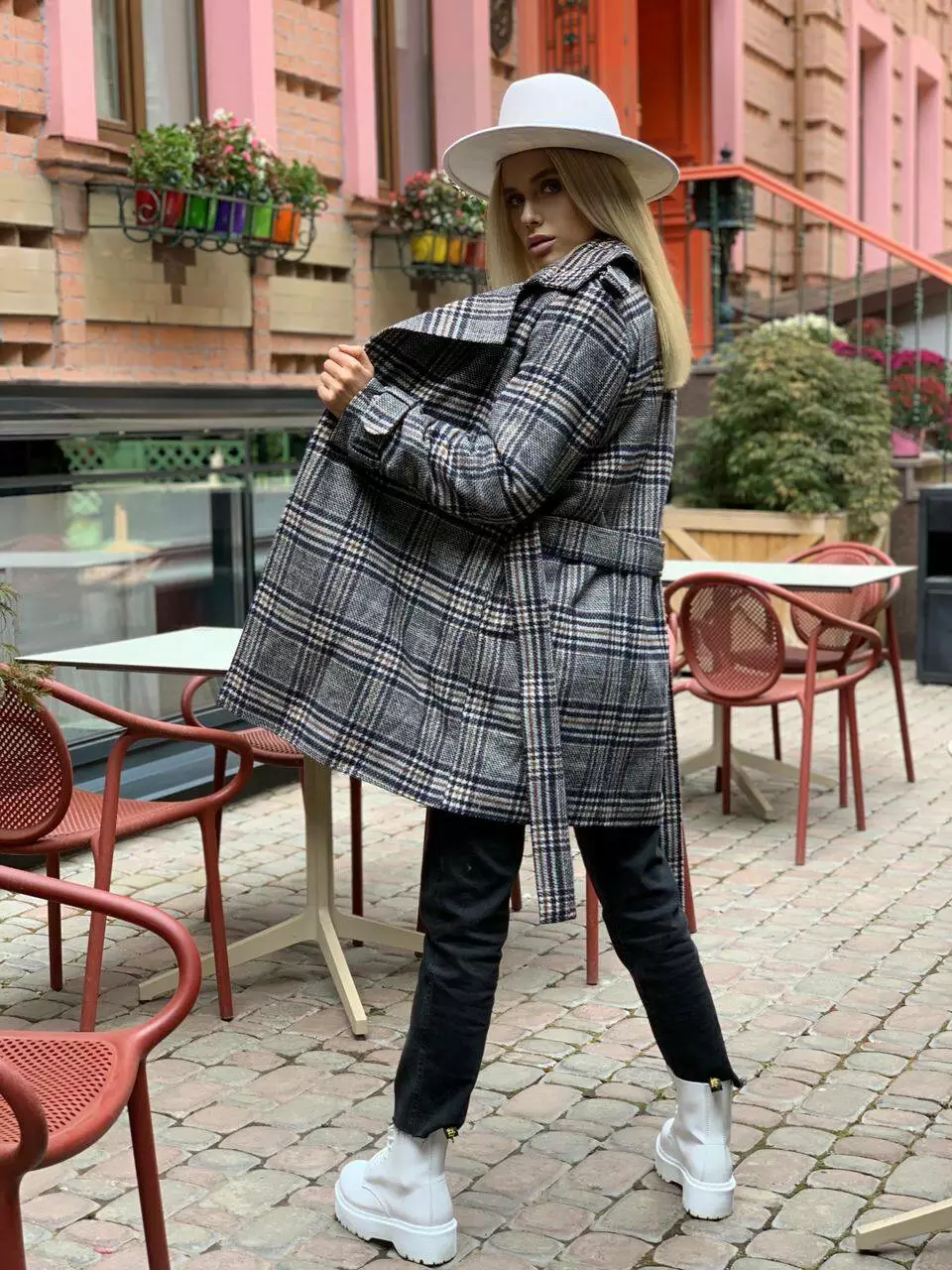 Утеплене двобортне пальто на запах Застібається всередині на гудзик, під пояс з 2 кишенями в бічних швах Декоровано патами