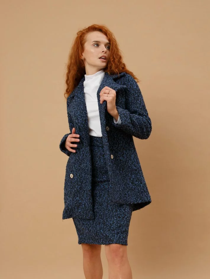 Двобортне пальто - піджак з букльованої вовни з класичним