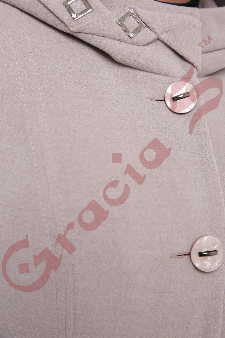 Полуприталенный силуэт, мягкия кашемир, застёжка - пуговицы в тон ткани и пришивной капюшон, которы защитит от холода.