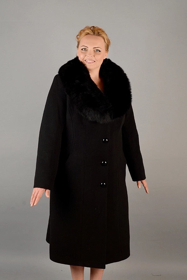 Длинное зимнее пальто. Утеплитель - синтеватин. Крой приталенный, пояс в комплекте. Застежка - пуговицы, вышевка пунктир понад швами. Два прорезных кармана. Воротник отолжной, оторочен натуралдьным мехом песуа, съемный.  Длина изделия 110 см. Размерный ряд модели 48-58. Цвета в наличии баклажан, васильковый, черный.