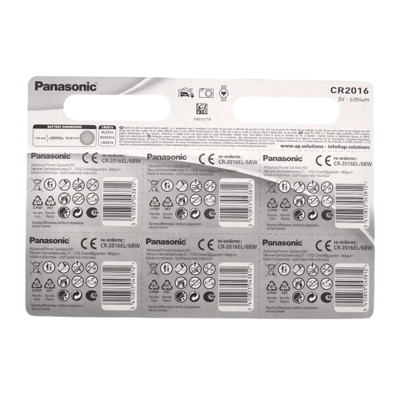 Panasonic Батарейка CR-2016 Lithium 3V 6 шт – літієва батарейка з