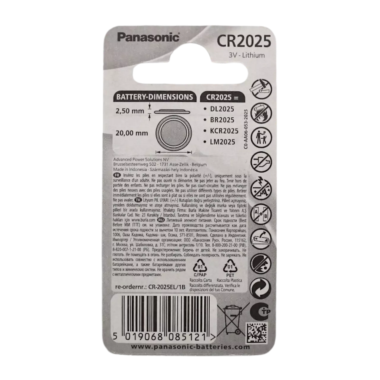 Panasonic Батарейка CR-2025 Lithium 3V 1 шт – потужна літієва