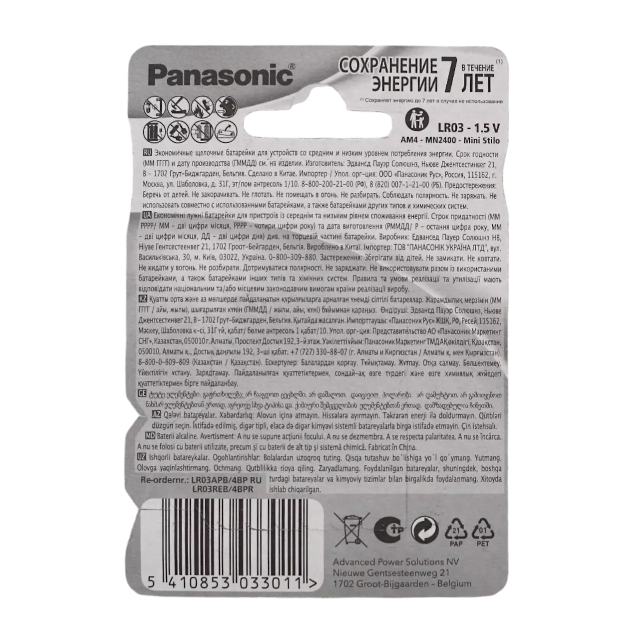 Обирайте Panasonic Батарейки LR03 Alkaline Power (Bronze) для